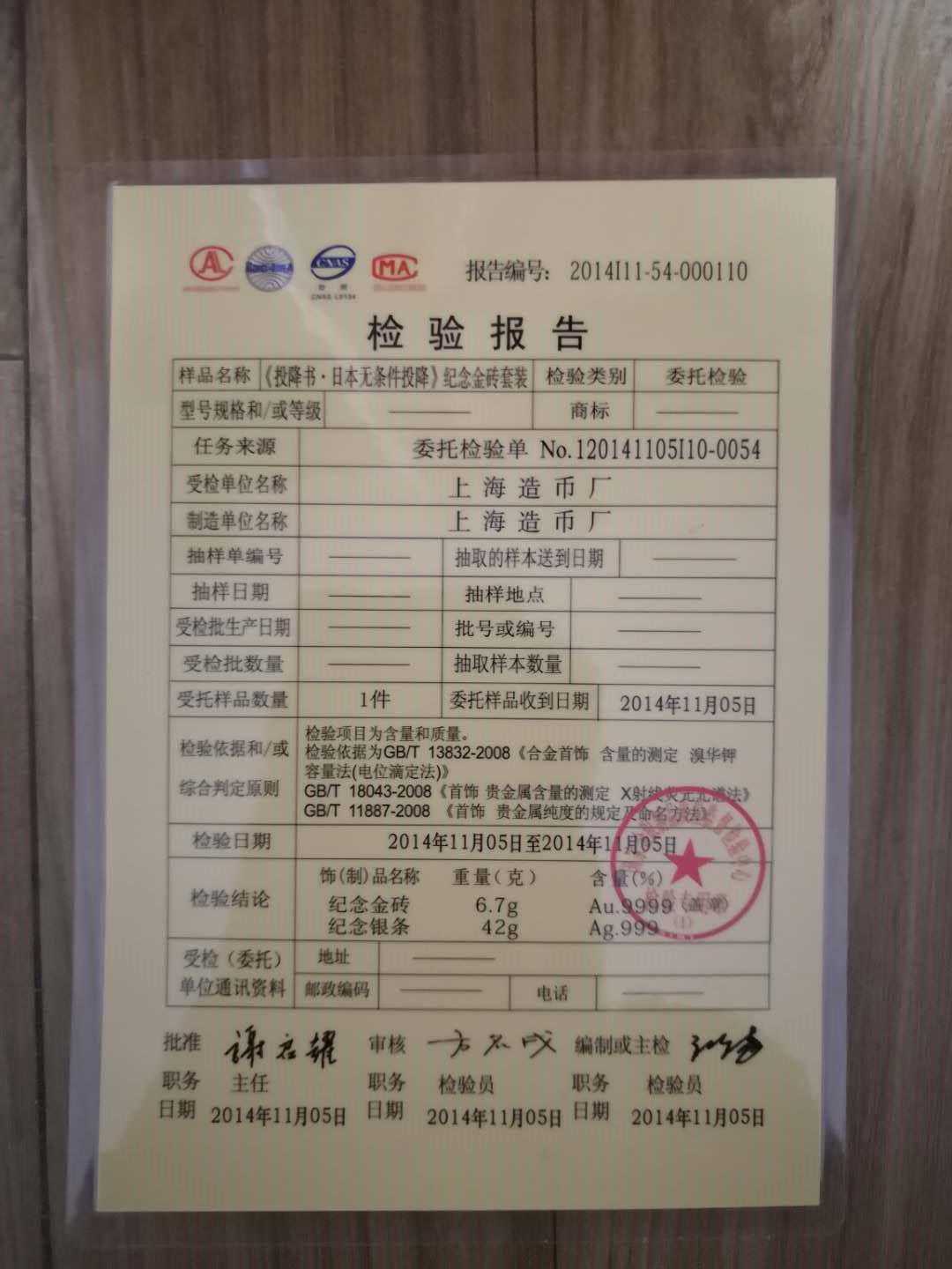 上海造币厂检测报告。上海造币厂是中国四大造币厂之一,非常权威。