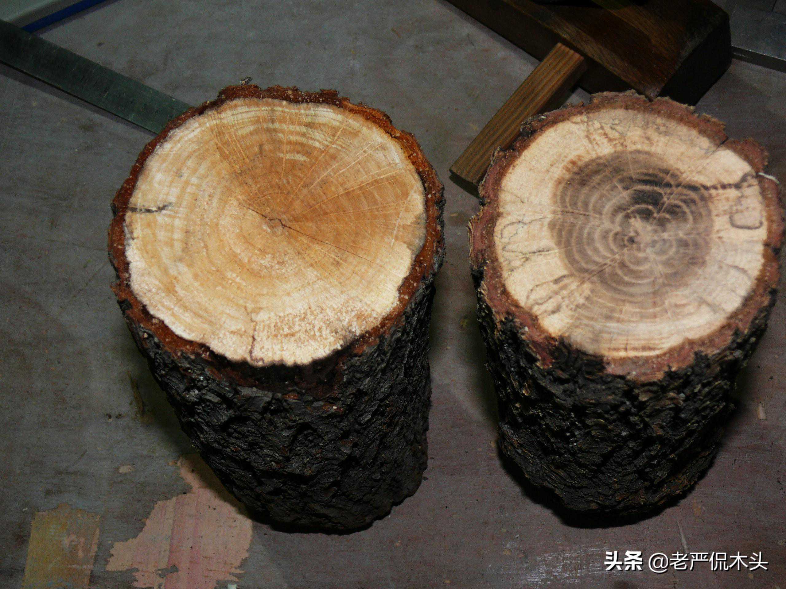 最后做个小游戏:下面的两根木头是我从亲戚家柴火堆里翻出来的,你能看出来都是什么木吗?