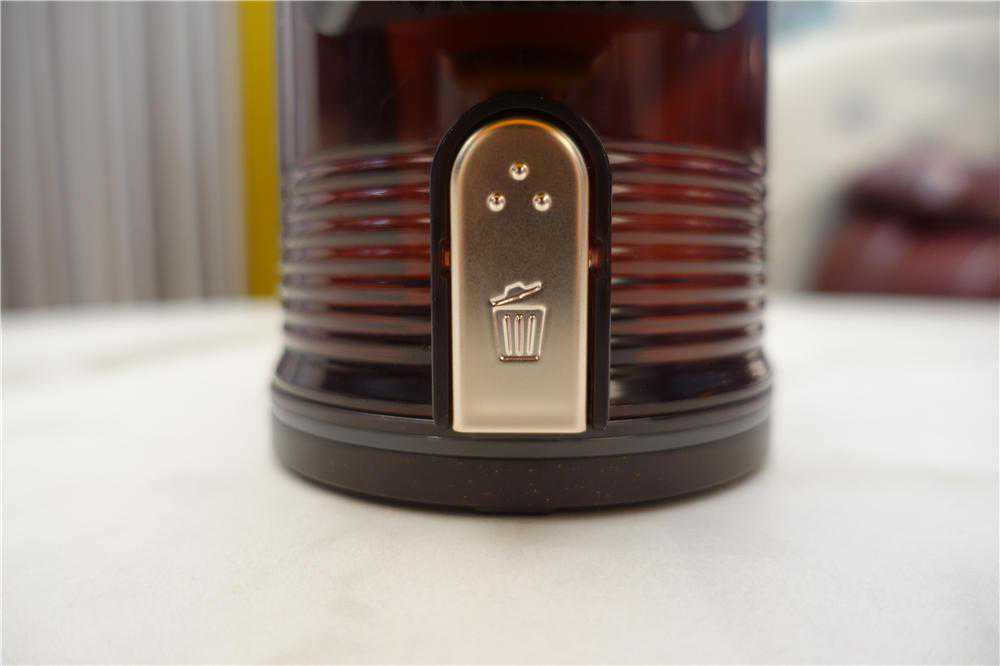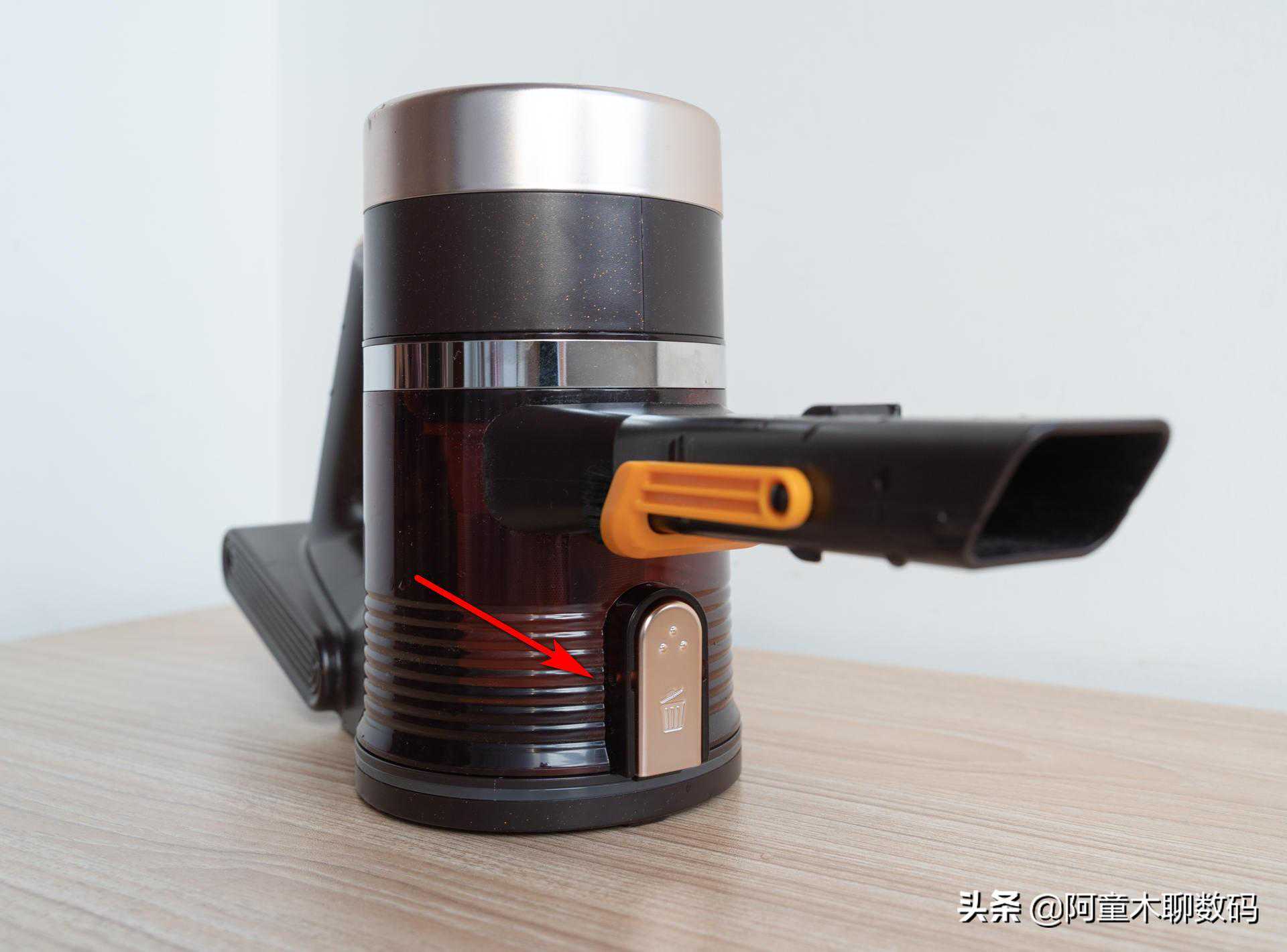 六、一键轻松倒尘尘杯里的赃物怎么倒出呢?很简单,尘杯外部设有一银色按钮,轻轻一按,尘盒盖子即可自动打开,灰尘直接掉落垃圾桶中,不会脏手。