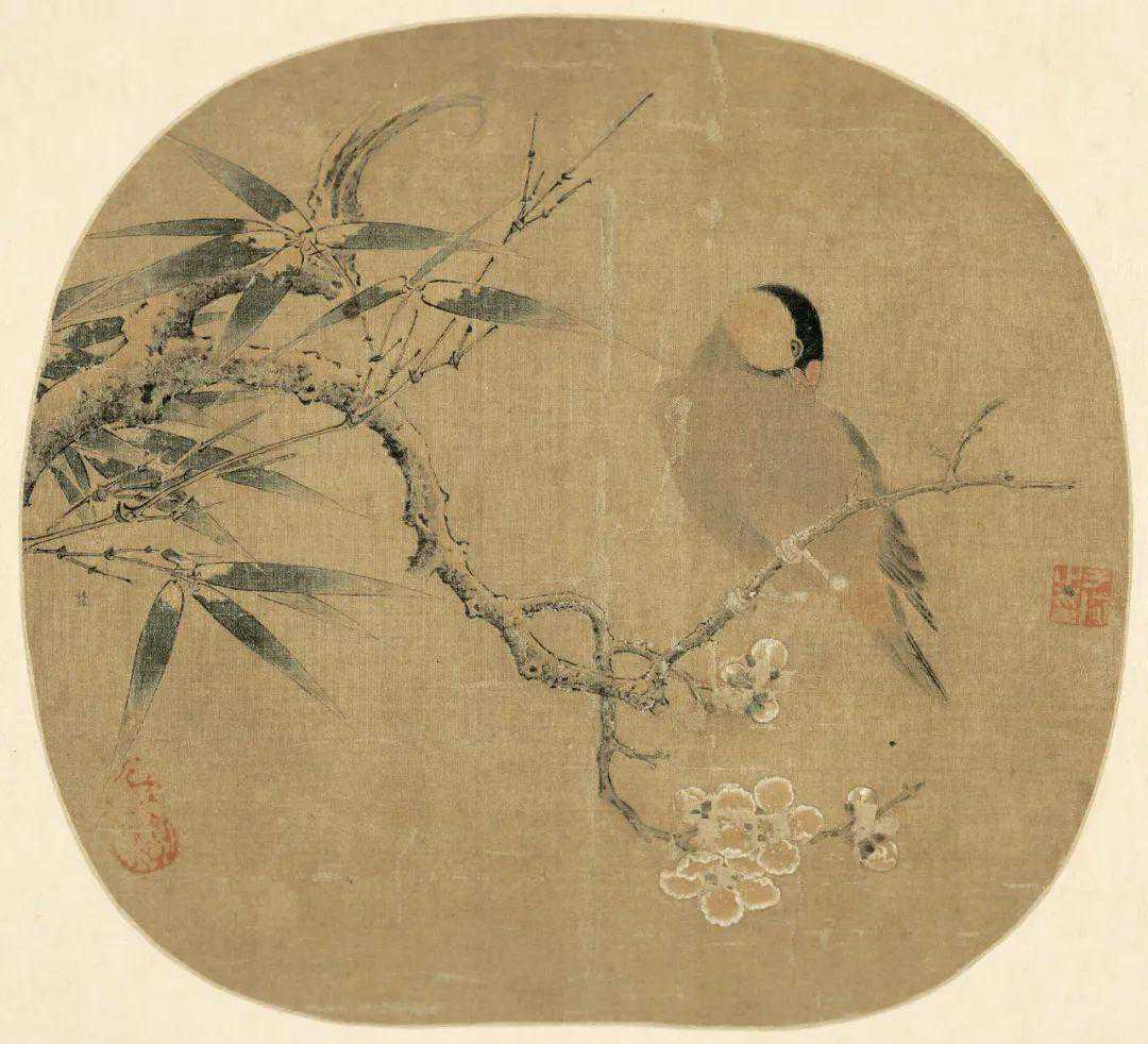 此图画翠竹寒梅,残雪未消,寒雀剔羽枝头,栩栩如生。梅枝用苍劲顿挫的皴笔画出,竹用劲细的墨笔双勾后染色,寒雀用细毫写羽毛,梅花用粉晕染而成,意韵清拔隽逸,是南宋小品画的佳作。