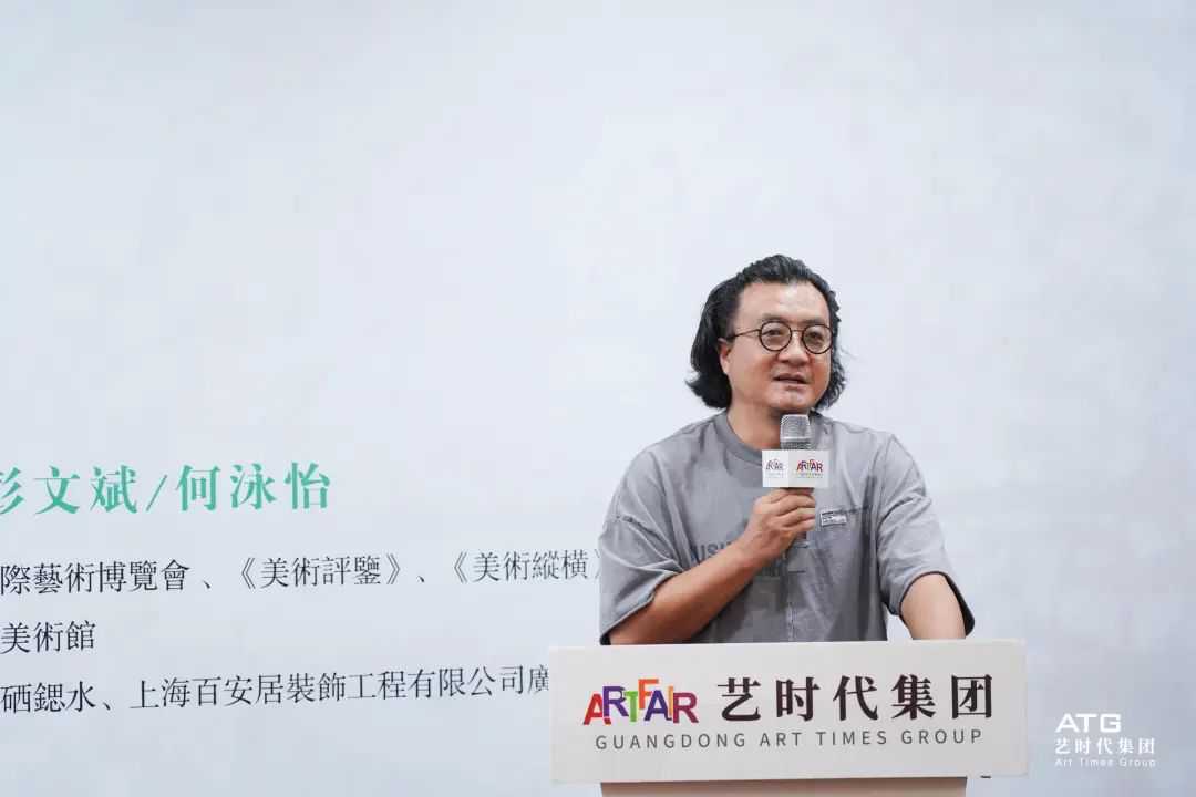 开幕式致辞环节,来自各界的嘉宾代表、主办方、策展人依次上台分享关于此次展览的感想,为欣赏与理解袁付国艺术内涵作出多角度阐释。