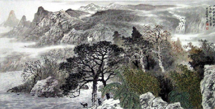 天天漫画网:陆贵福笔墨自然,作品力求创新,崇尚自然。他的山水画幽静清雅、意境深邃,熟悉各种山石、树木、树叶等的基本画法,然后再把这些山、树、石等组织起来就是一幅山水画作品。艺术与其它意识形态的区别在于它的审美价值,这是它的最主要、最基本的特征。正如他的山水画,只有身在那种环境中才能感受到大自然的美,才会画出最美的山水画。在色彩的使用上更是为传统水墨画添加了灵动活泼的气质。观者从画中可以欣赏到“小桥流水人家;旭日东升时,映出的山水之美。