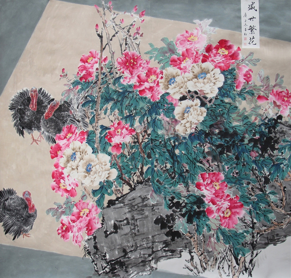 2021作品《盛世繁花》在“花开盛世”全国牡丹画作品展中获优秀奖。