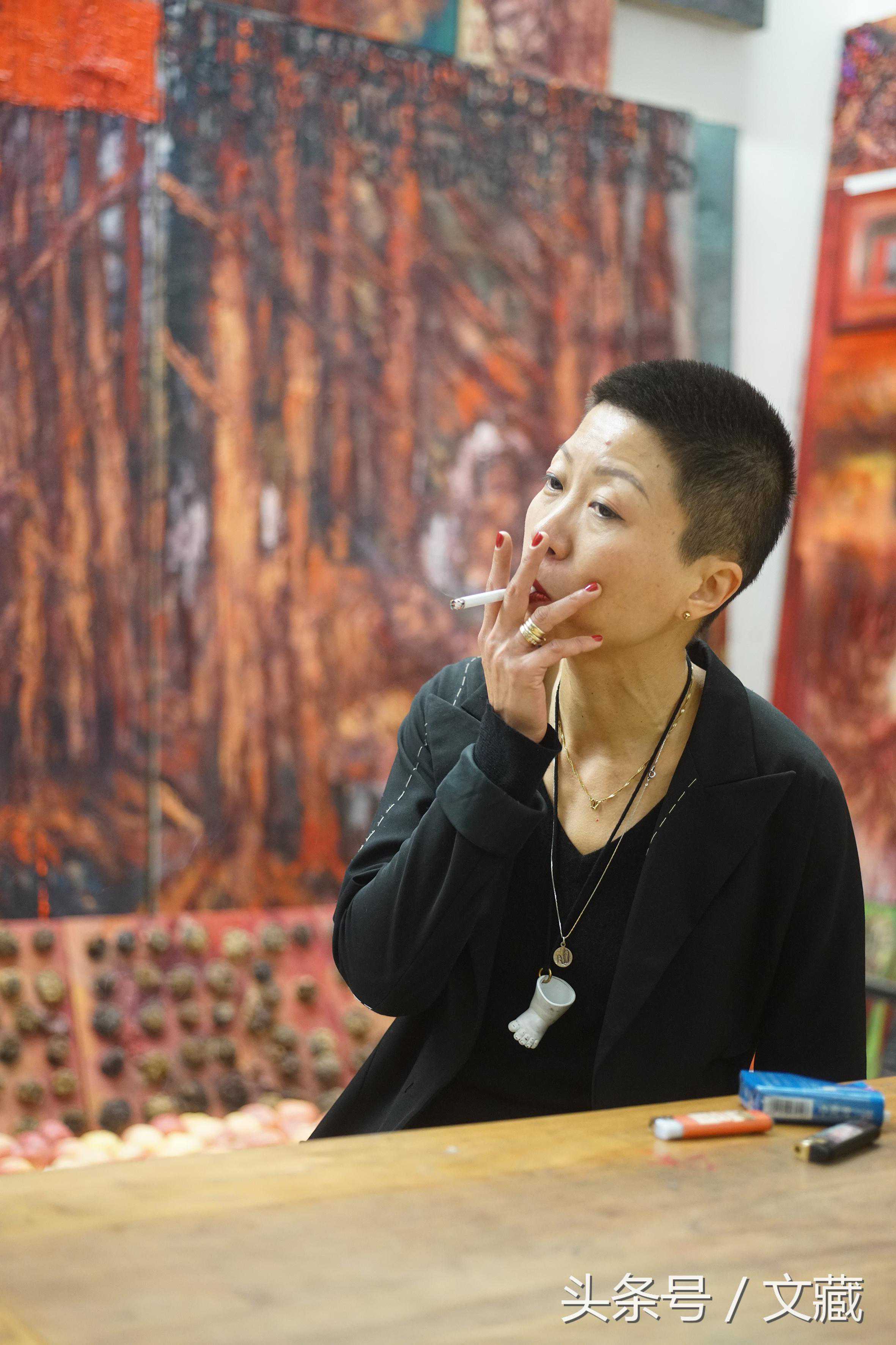 连头发也挑染成红色。在作品前,她收敛了锋芒,温和的看着自己的过往。