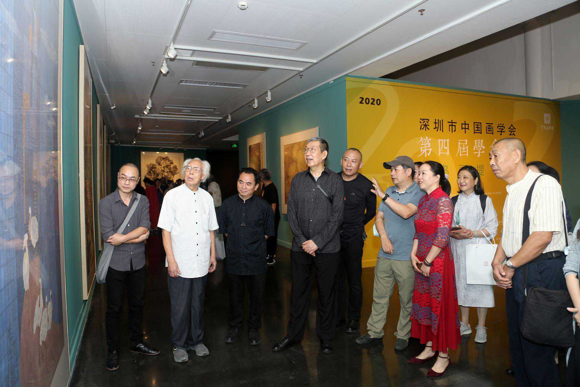 观展交流后,画家们移步到贵宾厅,进行座谈会,中国画学会副会长、深圳市中国画学会名誉会长董小明,广东省中国画学会秘书长潘小明,深圳市中国画学会会长于长江,深圳市美协副主席、深圳画院副院长、深圳市中国画学会执行会长杨晓洋,深圳市美协副主席兼秘书长郝强,深圳市美协副主席马顺先,惠州市中国画学会会长邱楚莲,深圳大学教授郭西元,深圳画院创作部主任、中国画学会副会长颜晓萍,福田区美协副主席、南园美术馆馆长尹晶华,执行策展人古秀玲及李宽明、乔广洋、李文秀、燕敦俭、李士军、高坤水、夏萍、景丽莉、罗兰、刘元生、贺勤、陈俊宇、刘元生、丁彦国、杨东风、陈国剑、皮祥玲、孙沛坤、米娜、蒙委权等参展艺术家参加了交流活动。