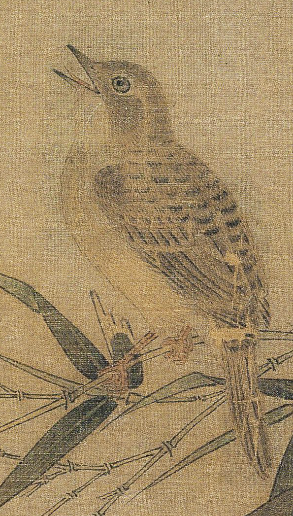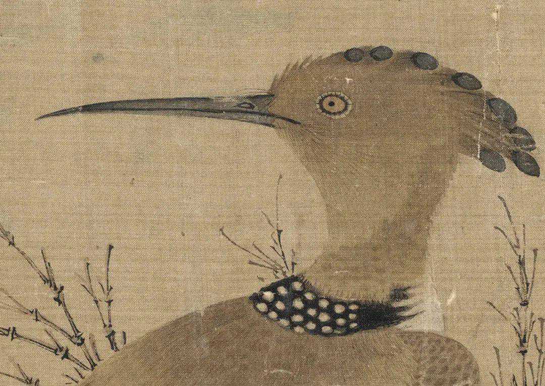 元代老赵本是南宋皇族移民,入仕元廷。能书善画,同样的竹禽题材,老赵似乎更有想法脱出套路。要禽是吧,画一只臭烘烘的戴胜鸟,画竹子是吧,只画竹枝不画竹叶不算犯规吧。画面敷色明净,笔法谨细。工致的画风秉承了北宋画院的画法,但“幽篁”的画法采用了书法用笔,显示了画家对文人情趣的追求。在赵孟頫的流传作品中花鸟画最为少见,此幅应为其早年之作。