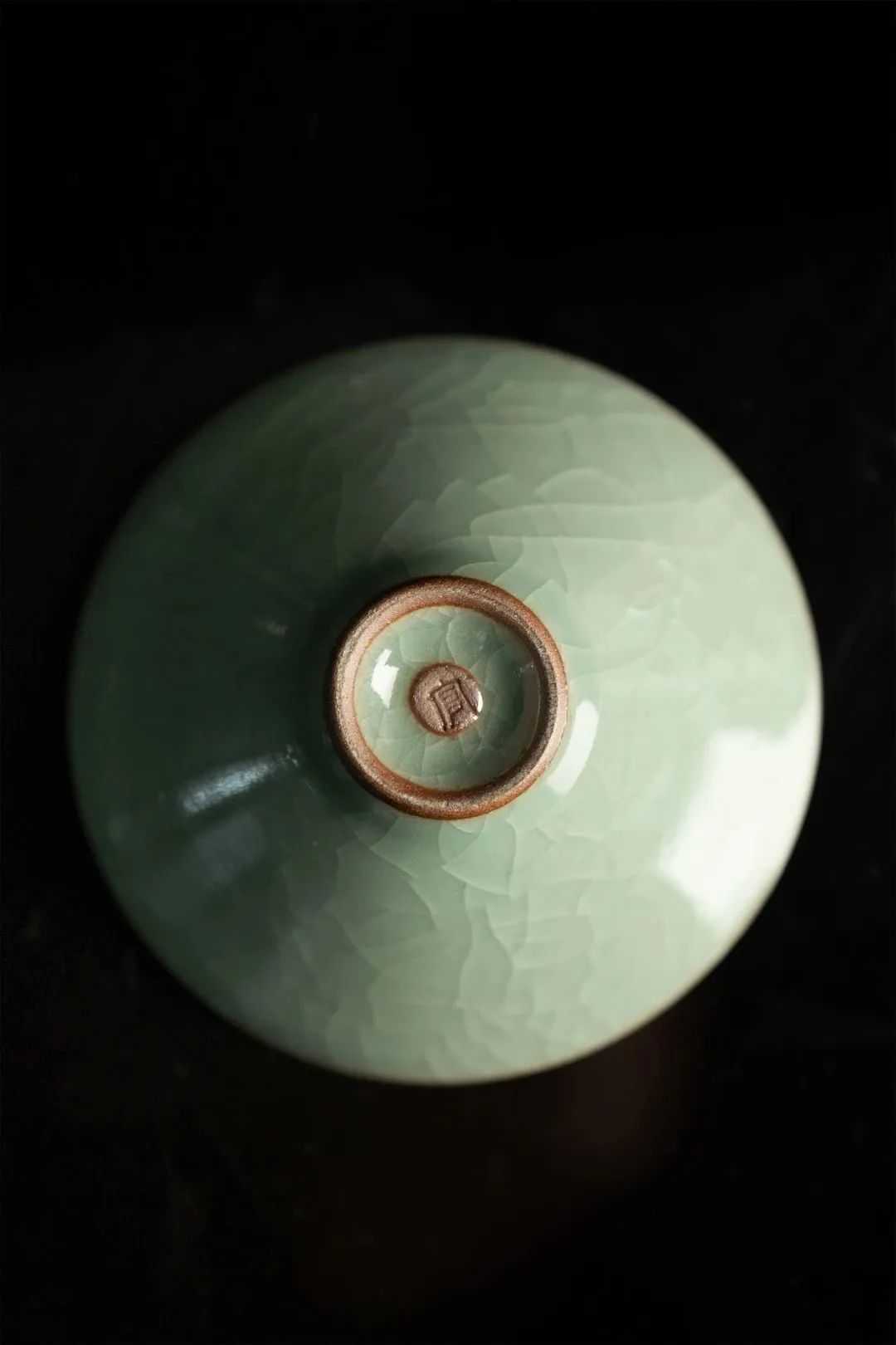 置茶桌上时不可见足,矮足彰显着对于釉水的把控功底,足圈之中印有“翟”字。