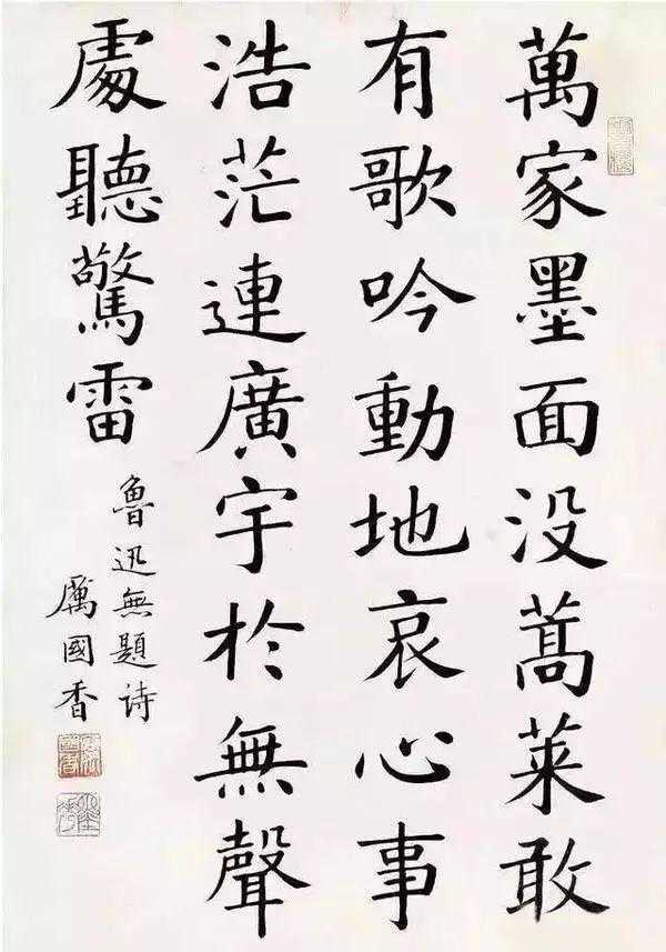 林徽因时年39岁,尚在病中,因而笔力略显弱了一点,个别字有些笔划显得纤细飘忽。但这副楷书八言联整体舒淡雅致,笔划柔中含劲,虽多取弧势,而毫不俗媚,颇有几分丈夫气。全联无一字不飞动,亦无一字不规矩。通过比较我们就可以发现林徽因的临习之功和她的个人天分了。