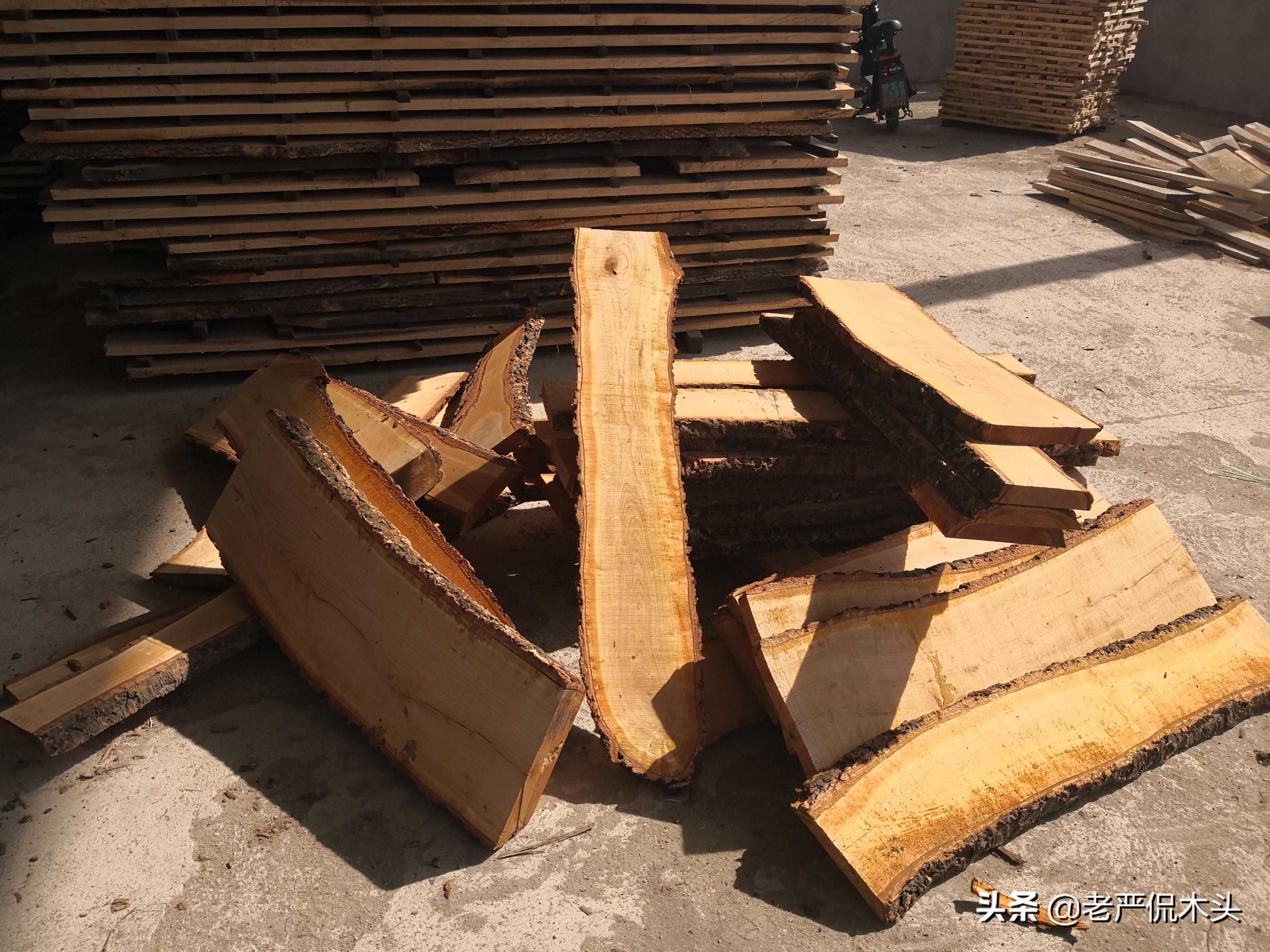 这一批槐木还未经窑干,被用等宽的木条隔开,再用铁线捆牢,基本杜绝了变形的可能,料主明显是个内行。我见猎心喜,提出要购买一捆。厂主很大方,直接白送。可惜的是未当场拉走,第二天厂家送楸木的时候落下了,心痛……