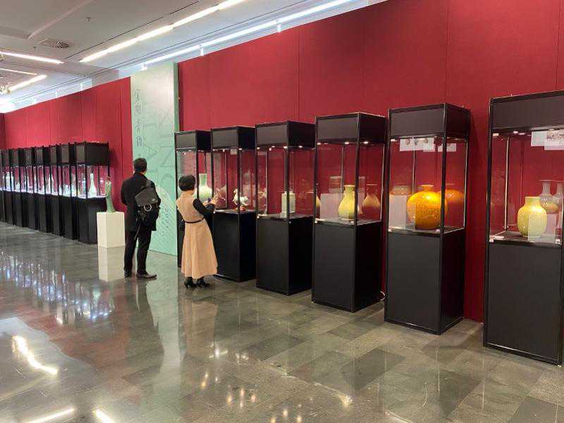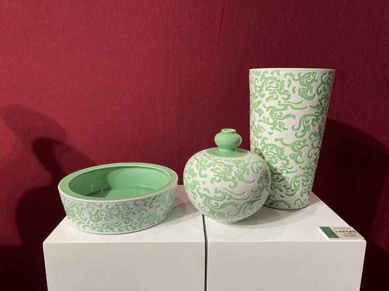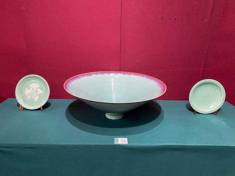 此次宜兴青瓷艺术晋京展是宜兴市陶瓷行业协会继去年宜兴均陶艺术北京展的又一次重大的陶瓷展览。展览作品中有《开片三鱼瓶》、《点彩三头孔雀瓶》《仿哥窑苏武牧羊》等16件历史作品,有省大师谈志坚的作品《窑变斗笠碗》《天马行空、平步青云》,省名人徐敏的作品《繁华》、《心如静莲》,高级工艺美术师张荣法的作品《荷花梅瓶》、《观耳瓶》以及从事宜兴青瓷产业的中青年技艺人员的作品72件。16件历史作品诉说着宜兴青瓷几千年的历史沧桑巨变,72件宜兴青瓷新生代的作品时代特色强烈,釉色精美,造型丰富,基本上反映了当代宜兴青瓷发展的精神面貌。