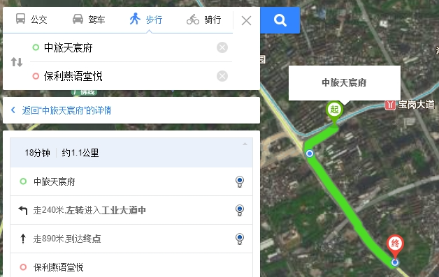 百度地图显示,中旅天宸府步行到保利燕语堂悦,仅需约18分钟,距离1公里多点,受到的冲击会更大。