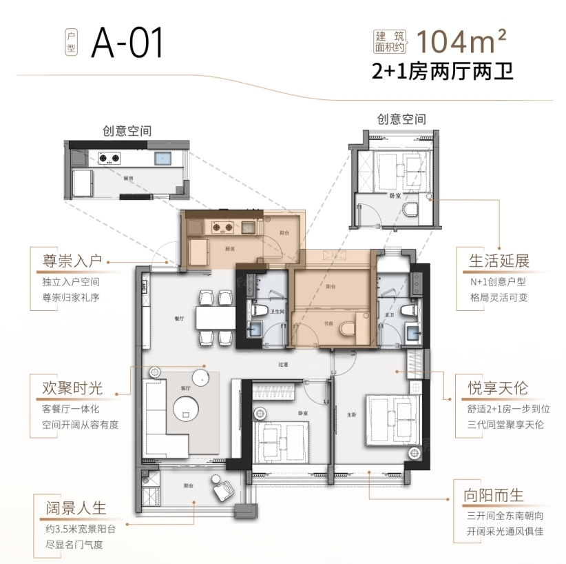 这个户型还只有一个卫生间,想要主卧是套房,还得买建面约86㎡三房户型。