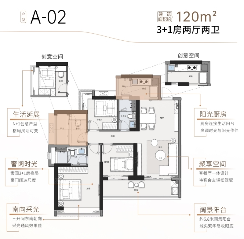 项目产品为建面约90-125㎡三至四房,主打刚需和刚改。