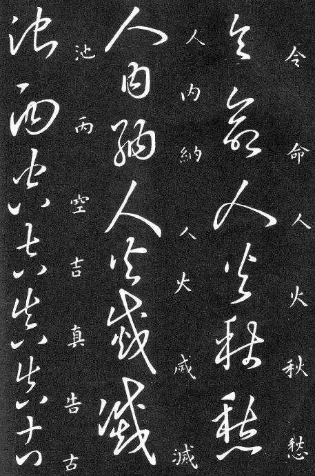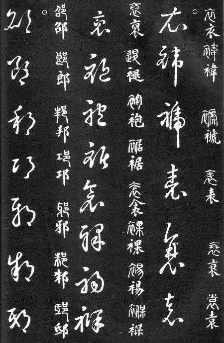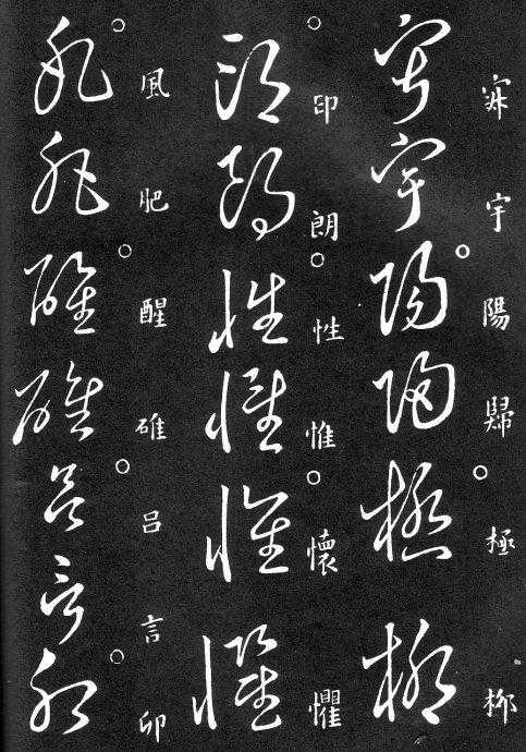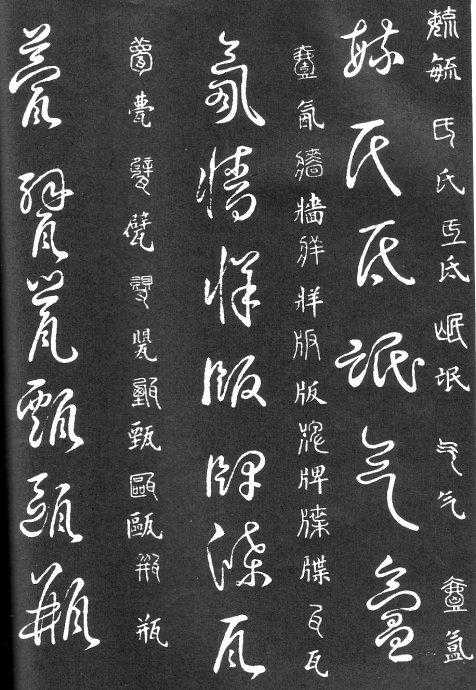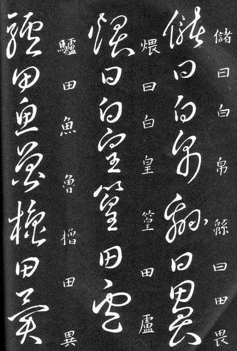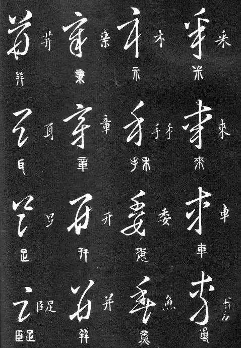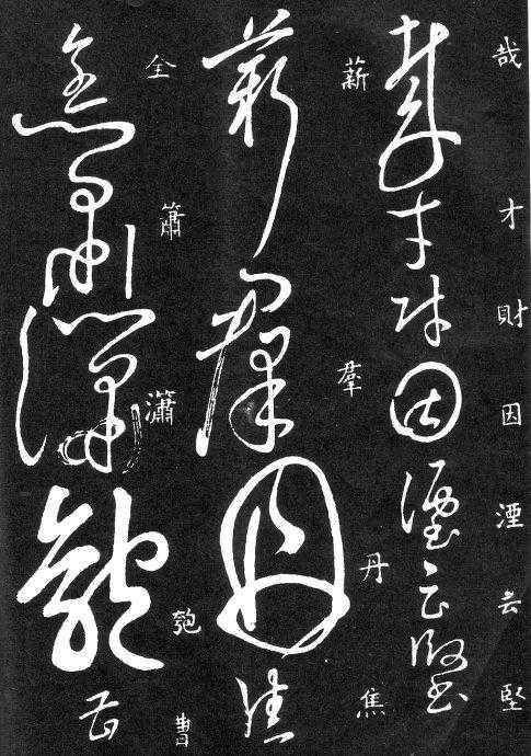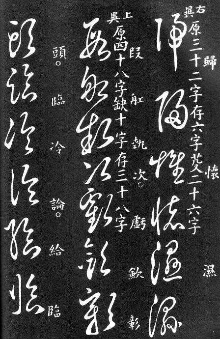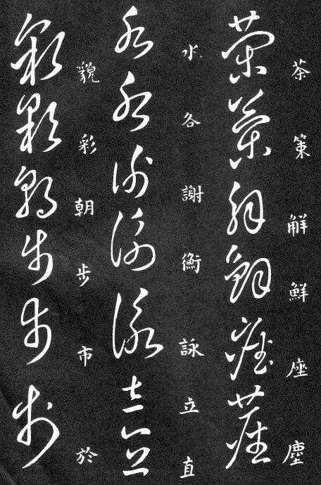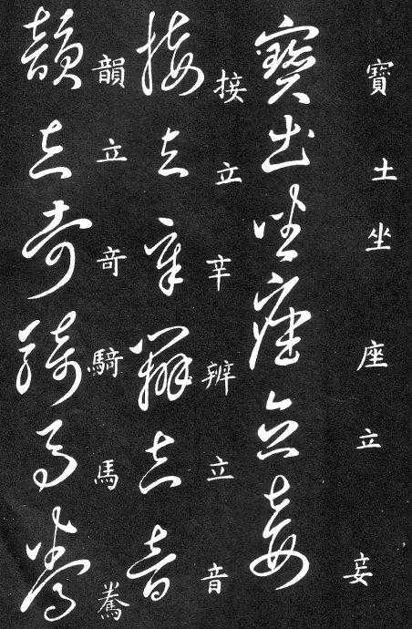 到唐朝时,草书成为一种书法艺术,因此演变成为“狂草”,作为传递信息工具的功能已经减弱,成为一种艺术作品,讲究间架、纸的黑白布置,是否让人能认清写的是什么已经不重要了。在狂草中,有“词联”符号,就是把两个字(常见词组)写成一个符号。由于当时书写多是从上到下地竖行书写,词联符号的设计也类似。“顿首”“涅盘”等都有草书词联符号。