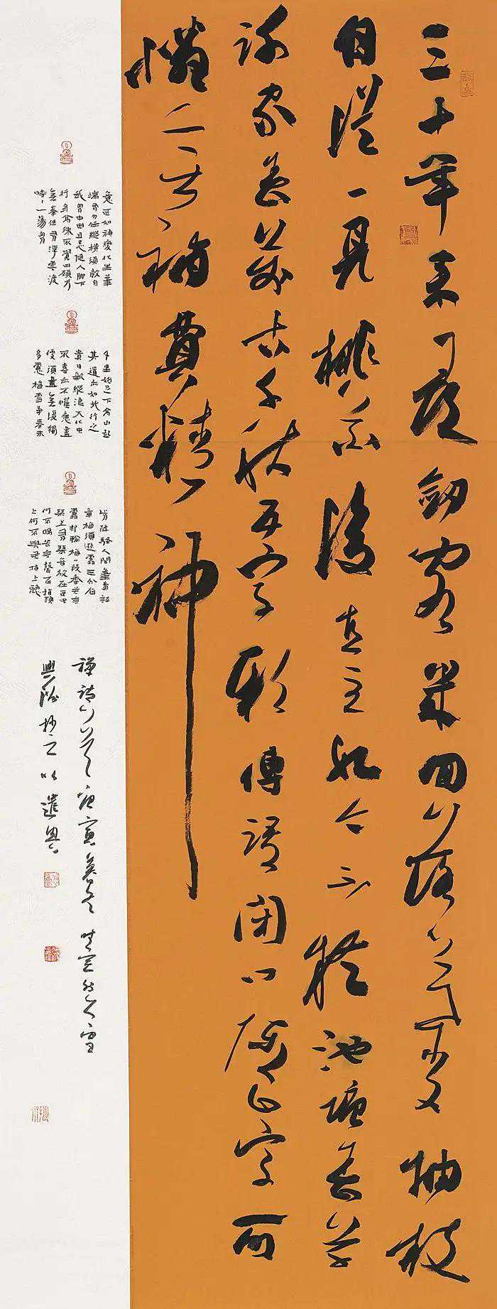 李有来的这幅字写的是兰亭诚不可忽。世间墨本日亡日少,而识真者盖难。其人既识而藏之,可不宝诸。前贤句。这幅字整体感觉动感很强,线条活跃,墨色、线条对比强烈。