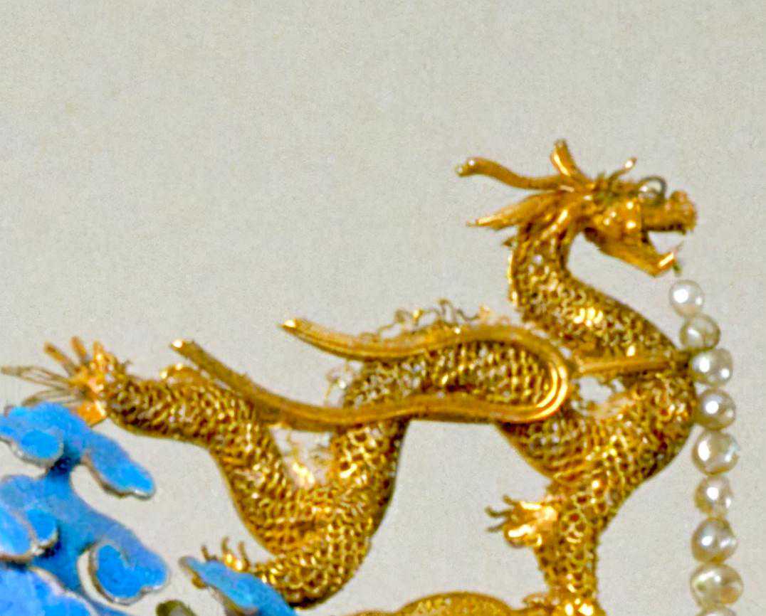 三龙二凤冠上龙头便是錾刻而成,精细至极