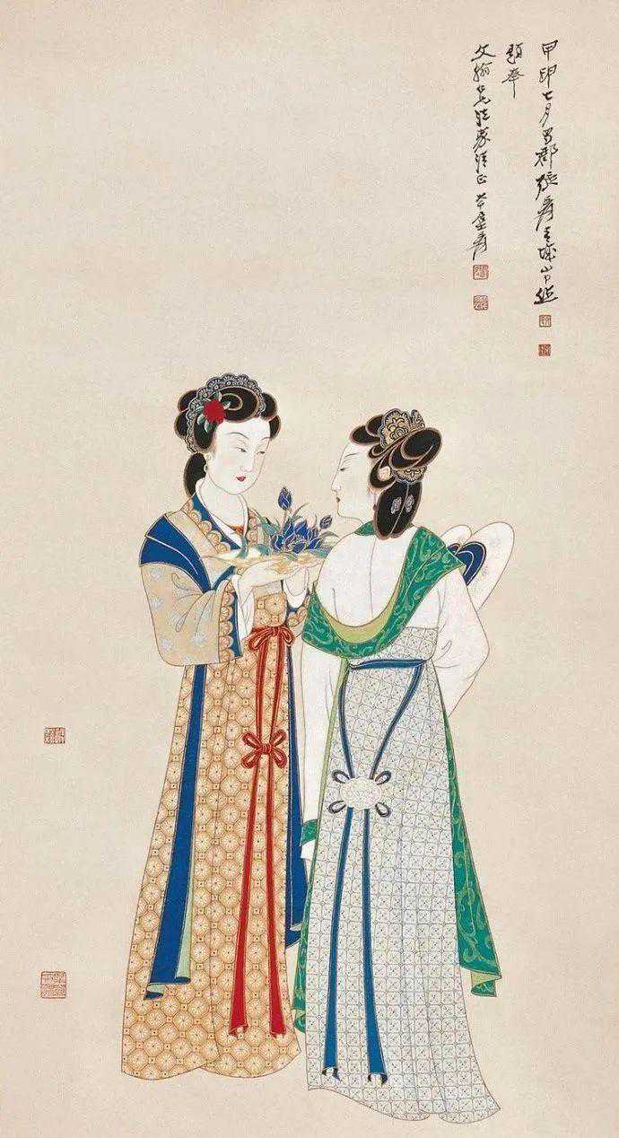 下:在张大千笔下的仕女图中常见金玉满头