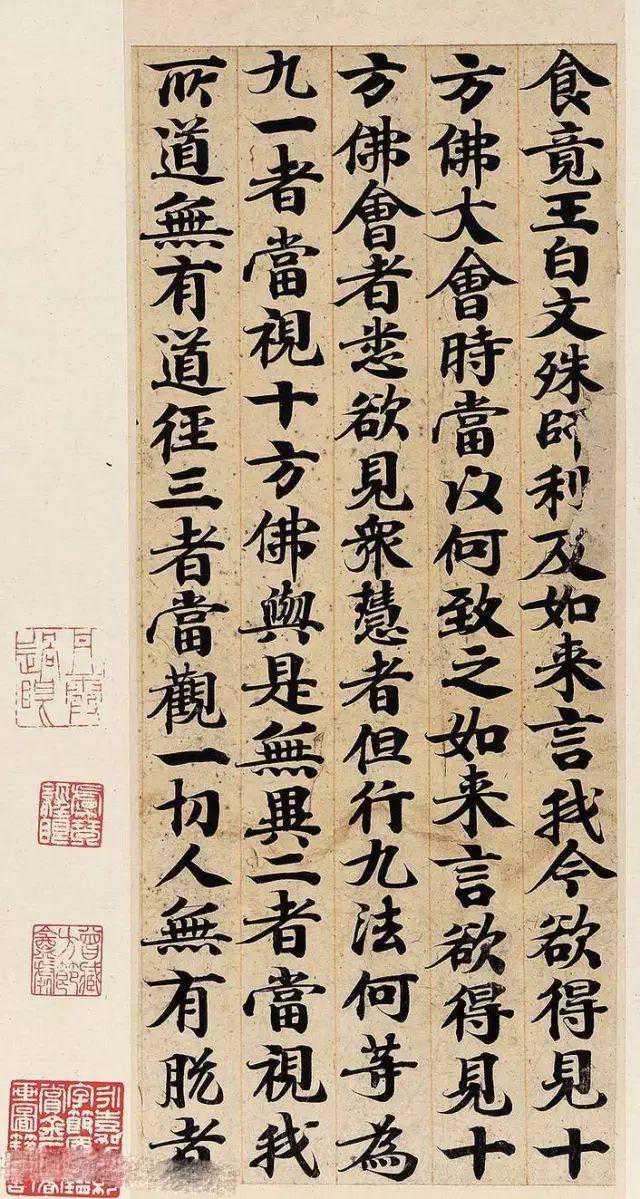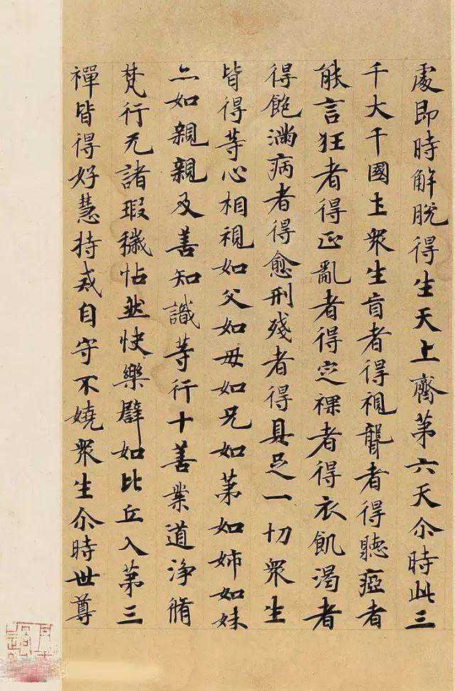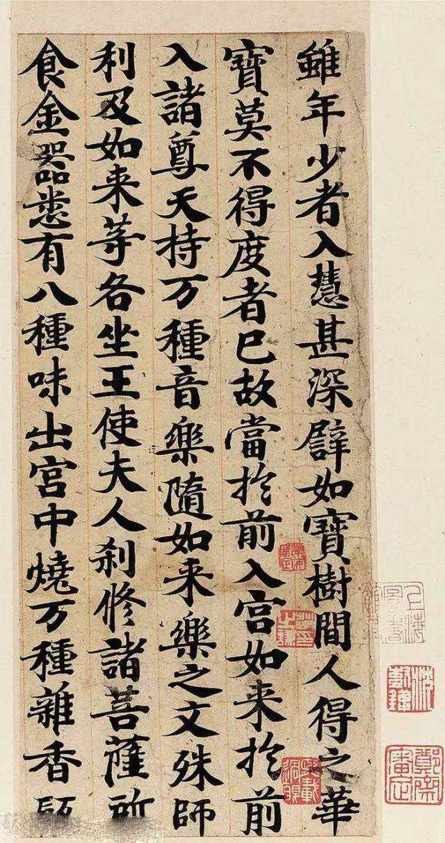 赵之谦:稼孙得唐人书残经,又得澄心堂纸,乞吴让之题字。沈均初复以所藏宋纸与之,悲庵居士摹随造像其上。
