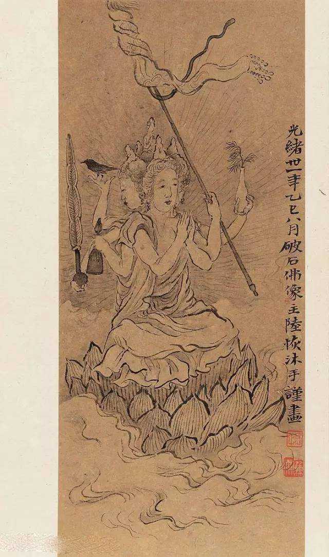 陆恢(1851-1920):光绪卅一年(1905年)乙巳八月,破石佛像主陆恢沐手谨画。