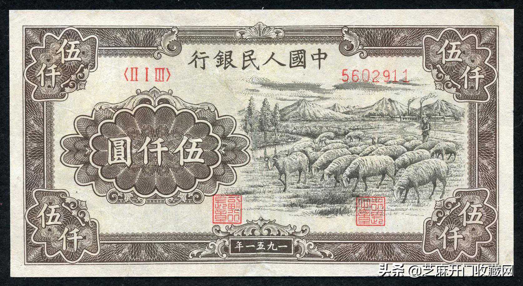 第一版人民币伍仟圆“牧羊”,估价:RMB30000-50000,成交价格:RMB110400