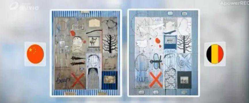 左为叶永青作品,右为克里斯蒂安·希尔文作品(比利时电视台制作的对比图)。