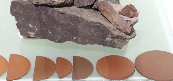 红皮龙是用于炼制清水泥的最佳矿料之一,原矿呈紫棕褐色,块状结构,粉砂质泥岩结构,其石英含量相对较高,粗细颗粒比较为合理,可塑性良好。