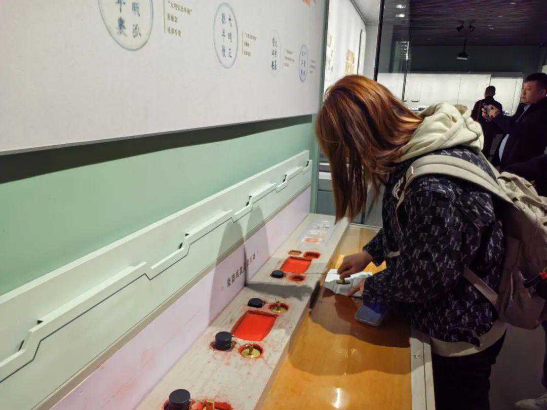 创新设计:新增“瓷器底款盖章互动环节”。基于当下的博物馆热,以及年轻人打卡博物馆、收集图章的潮流,在与形式设计人员多次探讨和沟通后,创新设计了“瓷器底款盖章互动环节”,将瓷器底款制成铜质或高分子材料的印章,游客可以盖章留念。这样游客在参观展览的同时,不仅欣赏到了艺术品、学习到了知识,还能通过互动环节打卡集章留作纪念。瓷器底款盖章互动,从改陈开展之初就获得了一致好评,全天排队不断,场面火爆。