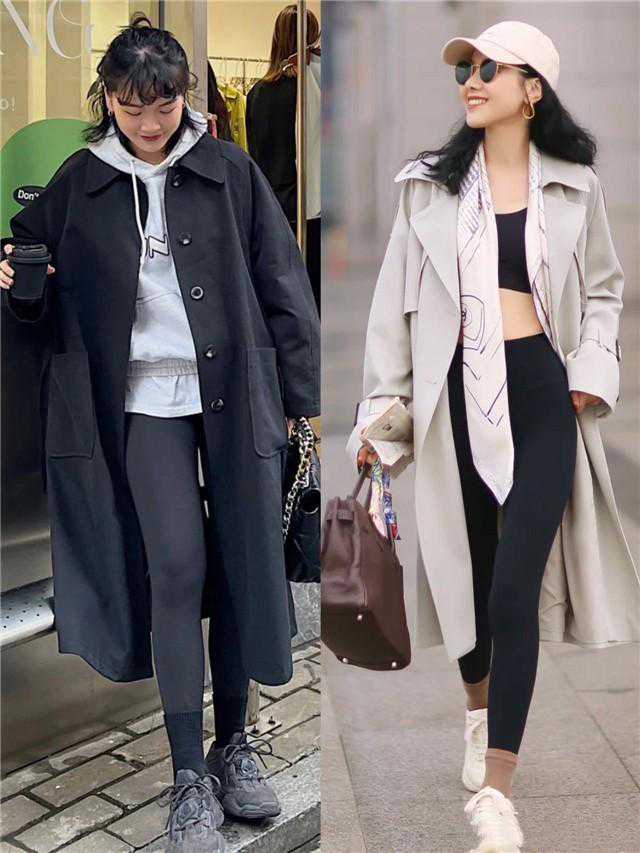 除了审美上的相得益彰外,风衣与鲨鱼裤的组合同样能带来意想不到的修身效果。风衣通常采用直筒或A字型版型设计,在视觉上延长了身形的比例,而当其下摆恰到好处地覆盖至臀部或大腿中段时,便能起到优化身型的作用。