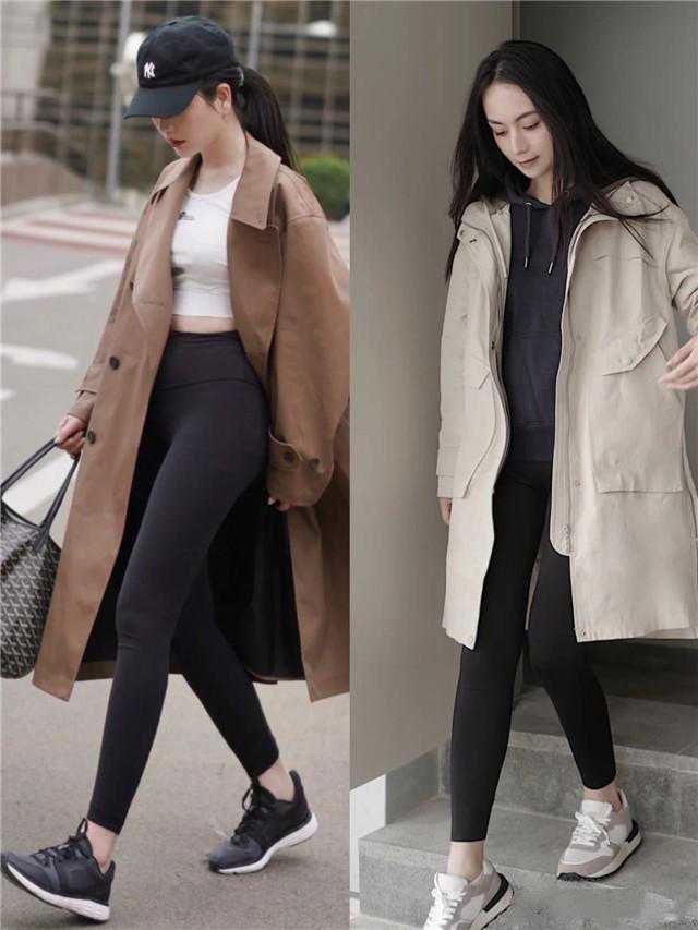 这样的风衣长度不仅减少了视觉上的压迫感,搭配修身的鲨鱼裤,还能有效延伸腿部线条,达到视觉上增高的作用,并且使整体看起来更加利落干练。