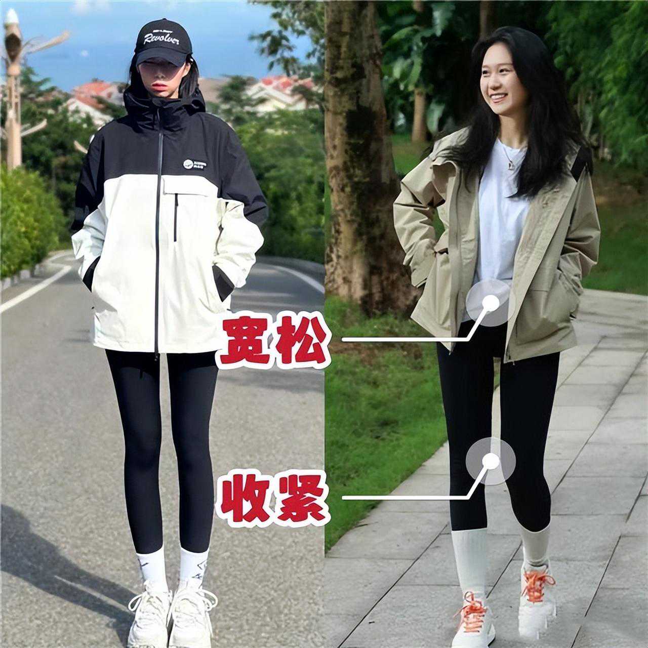 建议选择具有一定材质对比的套装,比如哑光风衣配合亮色鲨鱼裤,这样既保持了统一,又增添了质感的对比。