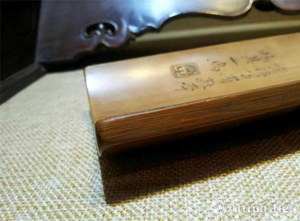 臂搁是书案上的重要饰物,富书卷气。一般用去节之竹筒分劈成三刻制。因是枕臂之用,宜浅刻平雕,以刻制书画为主。有镌座右铭以为警策,有刻所喜之诗画以作欣赏,有刊挚友亲人之赠言以为留念。它确实还有一些秘记档册的作用,故极受士人的偏爱。