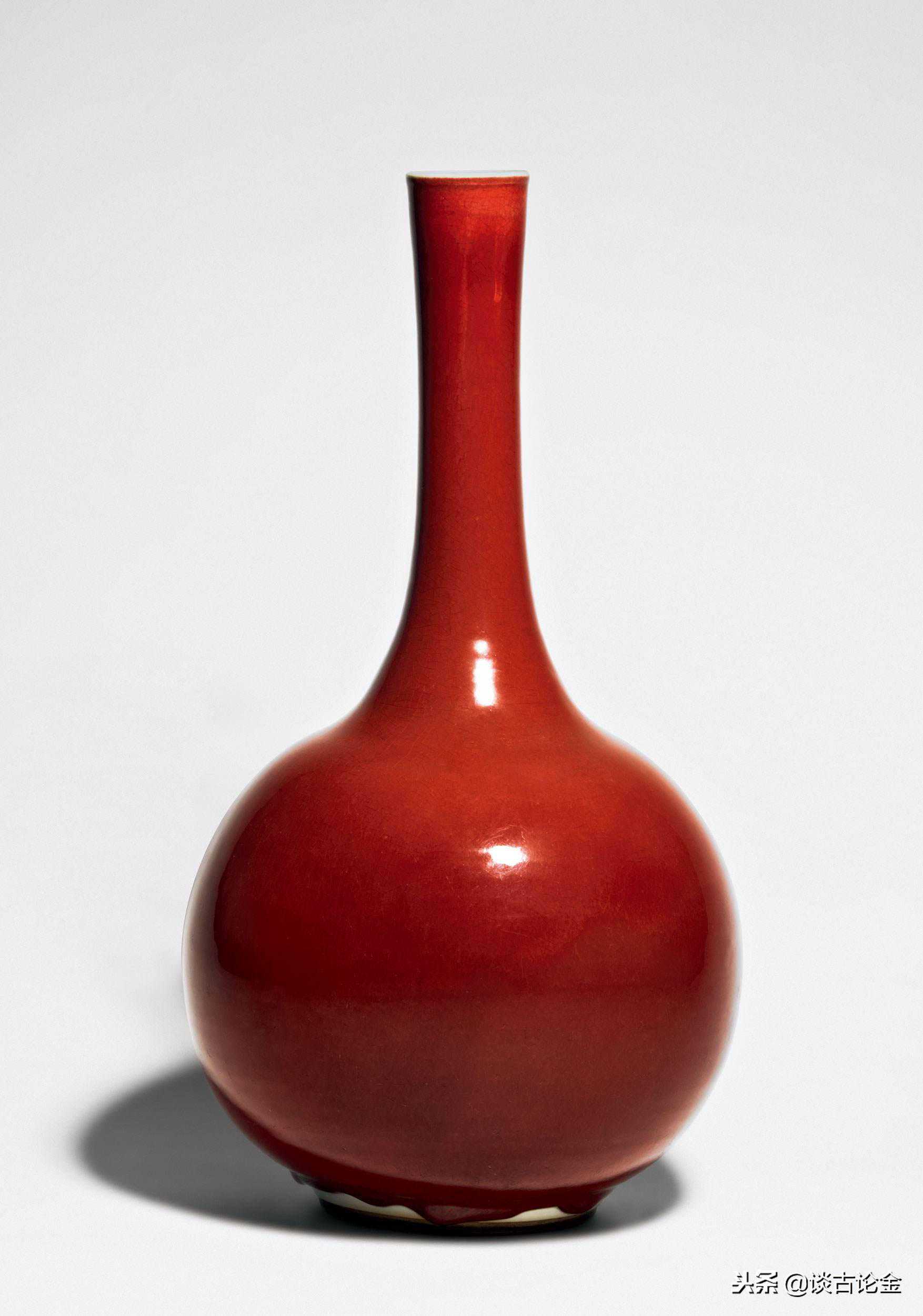 明清两代烧制瓷器使用的最基本的釉是无色透明釉,这种无色透明釉只有在熔入含有某种化学元素的矿物质,并且具备特殊的温度等条件的情况下,才会呈现出包括白釉、蓝釉、红釉、青釉、仿哥釉(金丝铁线)、仿官釉、仿钧釉等高温单色釉和黄釉、绿釉、红彩釉、炉钧釉、彩釉瓷等低温单色釉,而红釉就是其中特立独行、绽放异彩的一种。