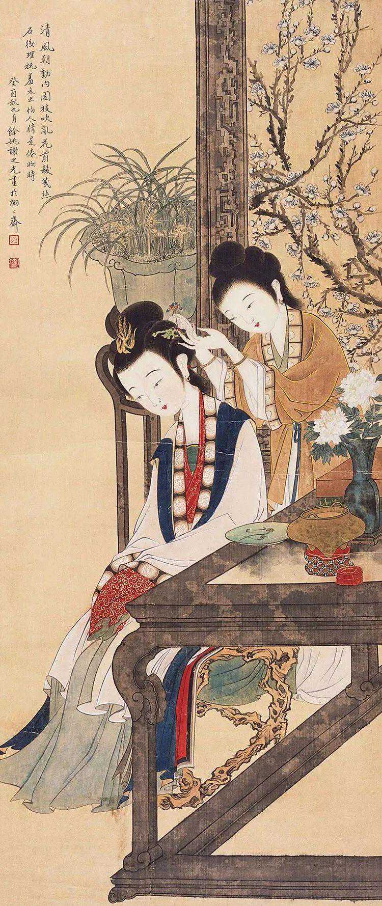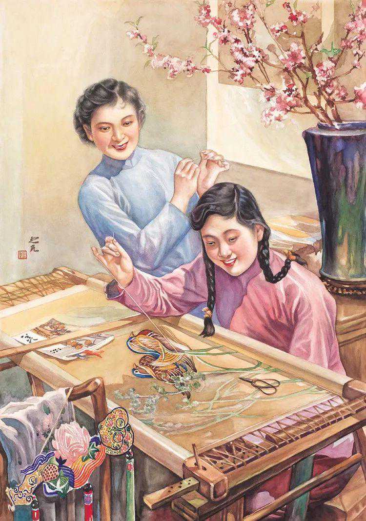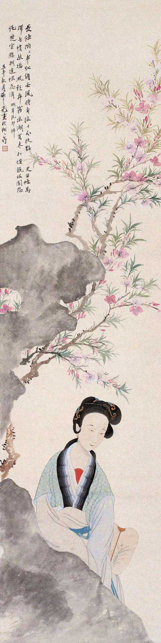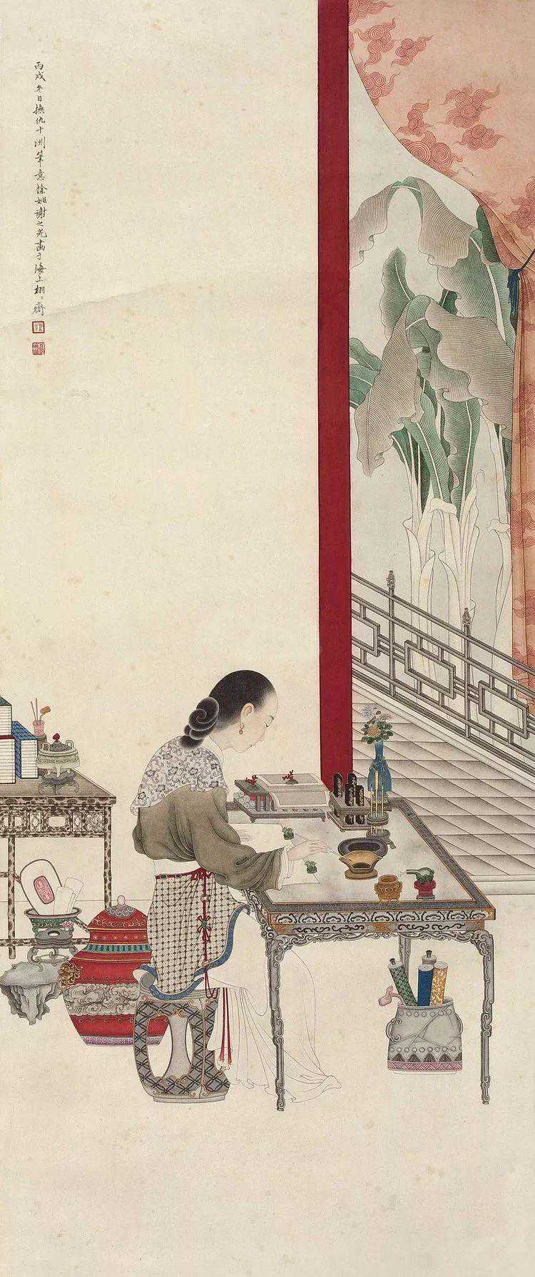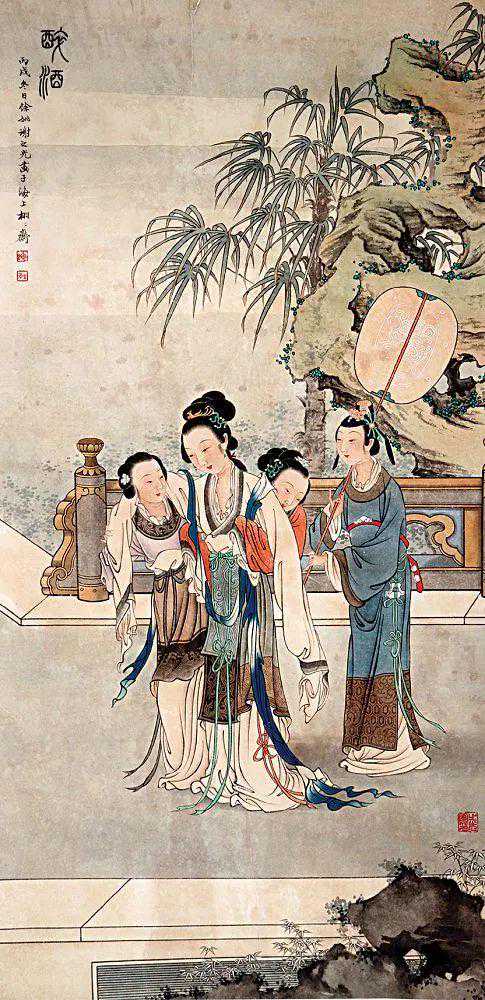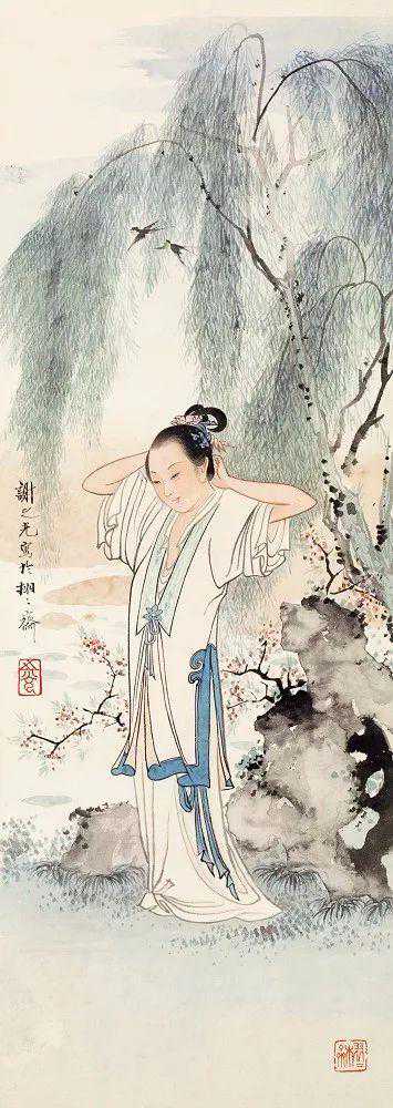 他擅长人物、鸟兽、花卉等,尤擅仕女画,笔法采中西之长,别具一格。