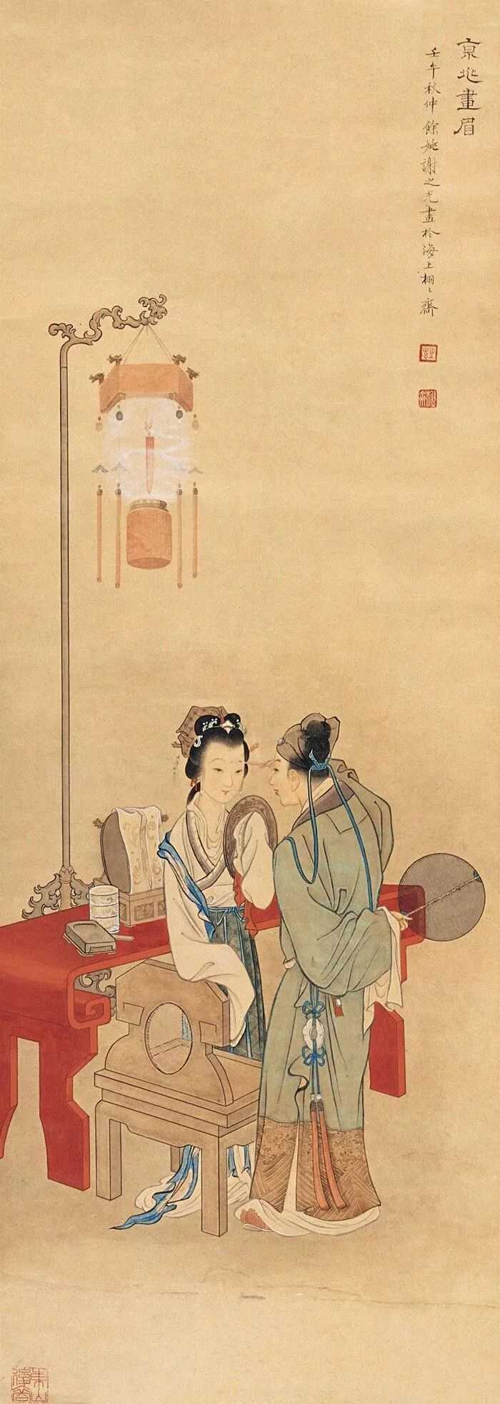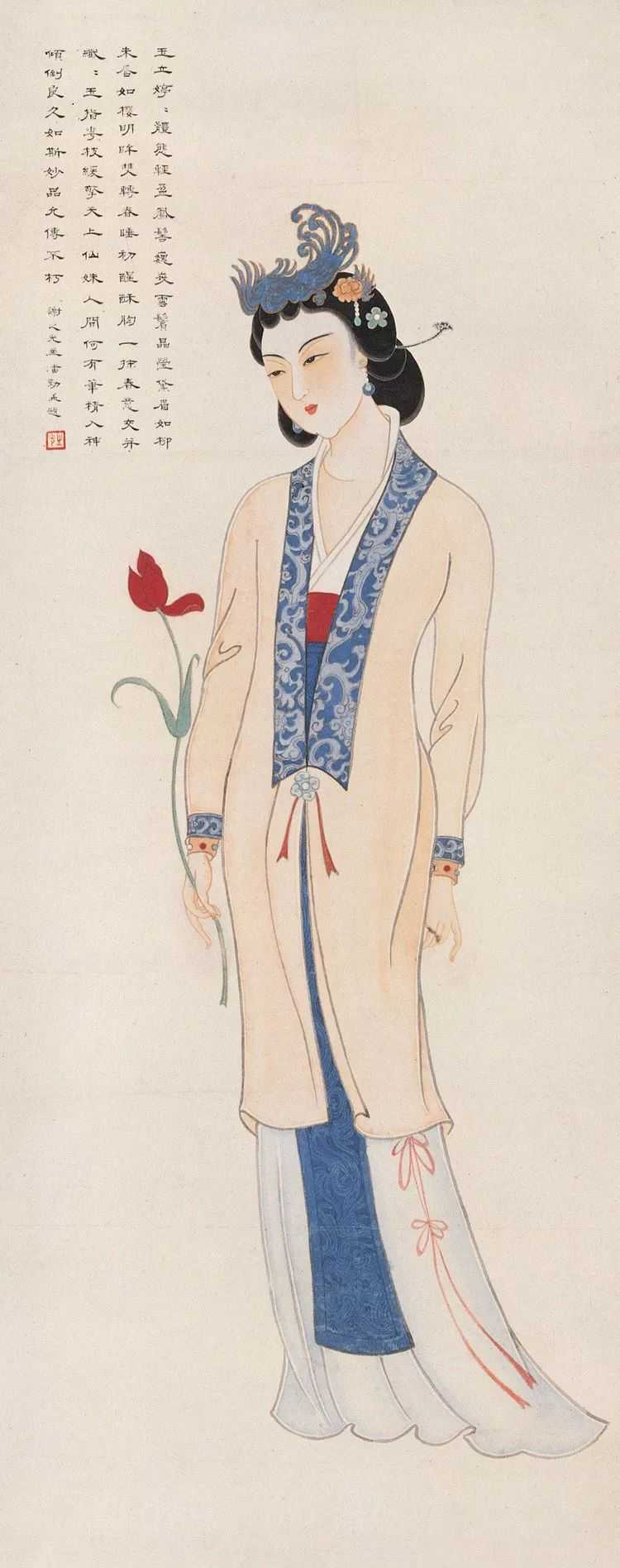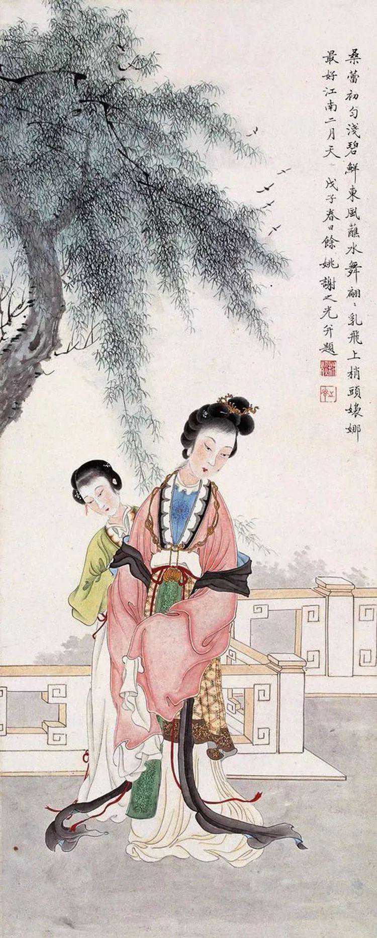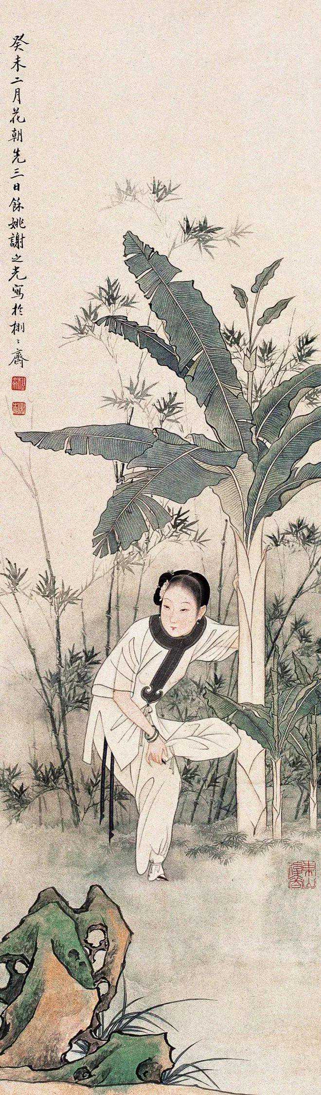 他擅长人物、鸟兽、花卉等,尤擅仕女画,笔法采中西之长,别具一格。