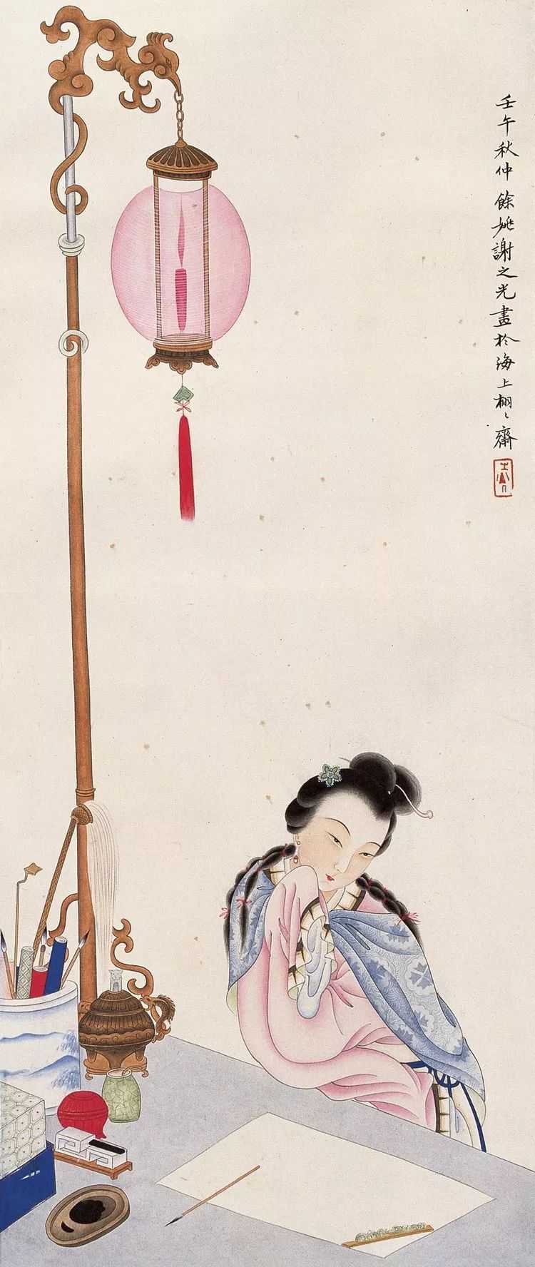 谢之光有一子一女,夫人叫潘锦云,娘家是开银楼的,人很开放,喜好跳舞、赌钱。在旧上海,许多商业谈判在“堂子”(妓院)里进行,一个当时与玉堂春齐名的妓女叫芳慧珍,谢之光后期的作品大部分是她当的模特。