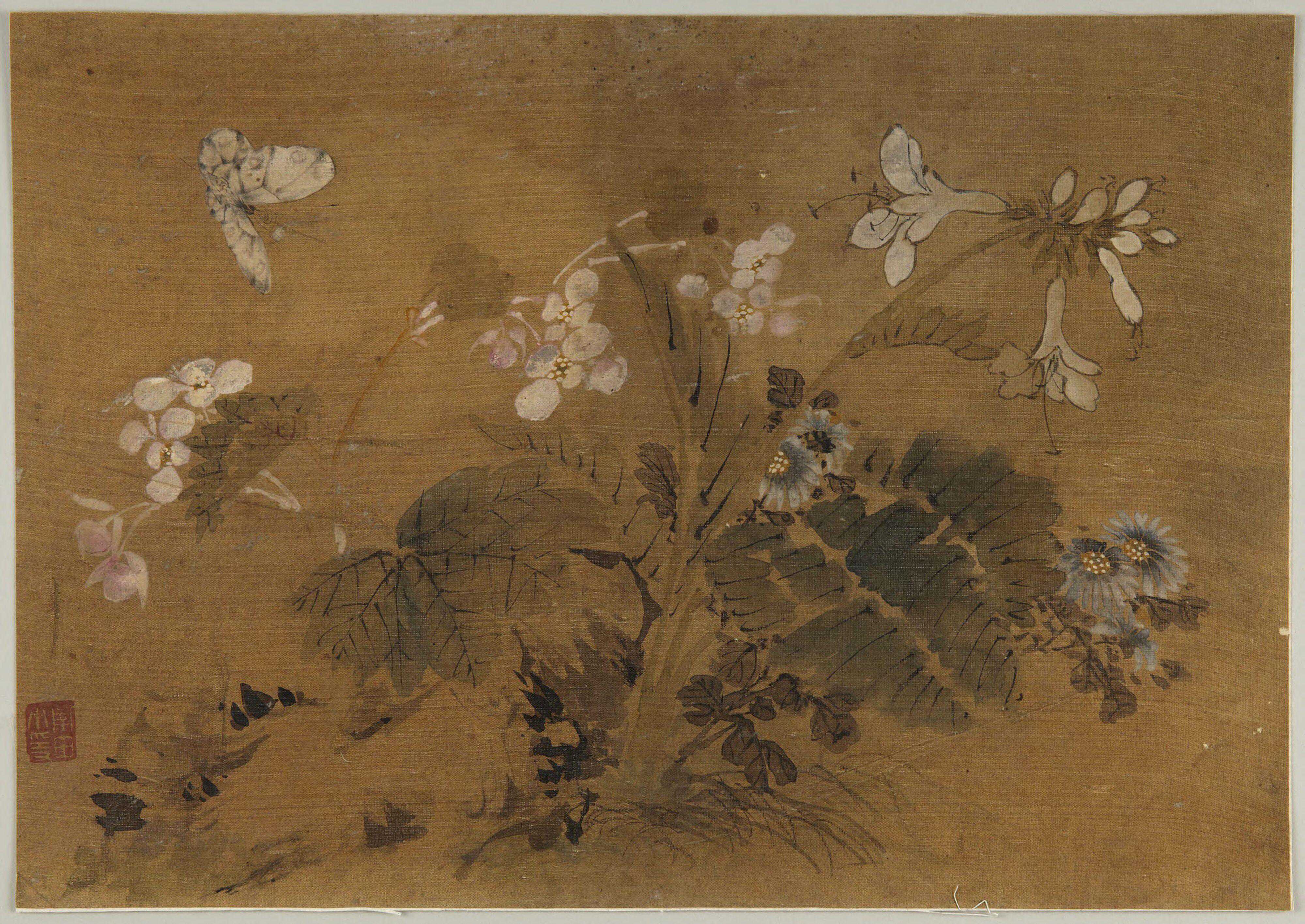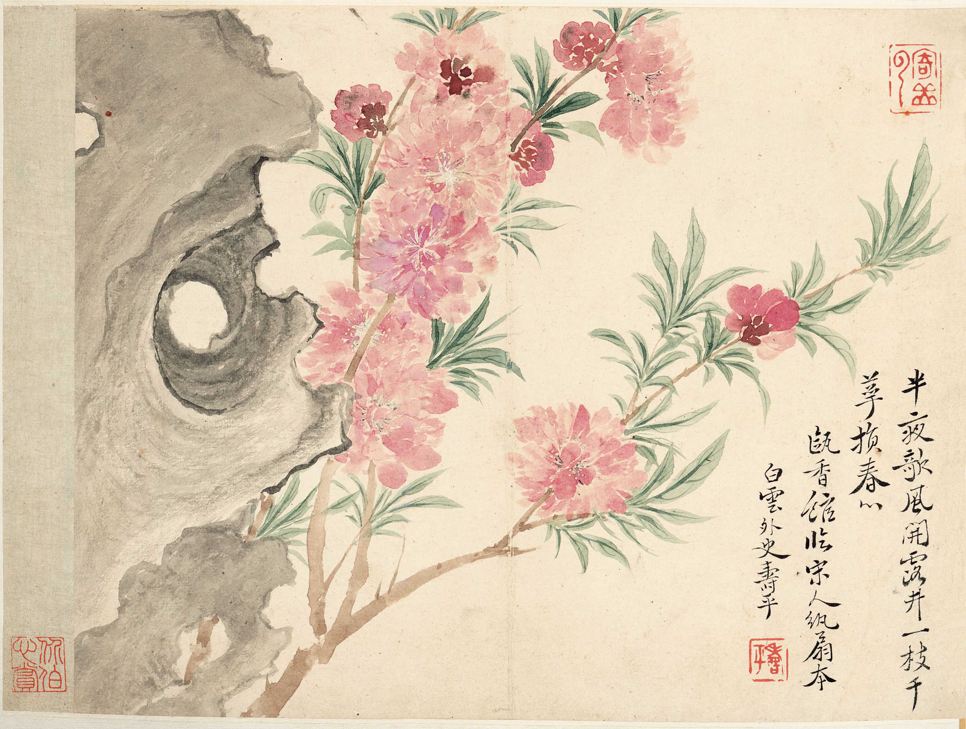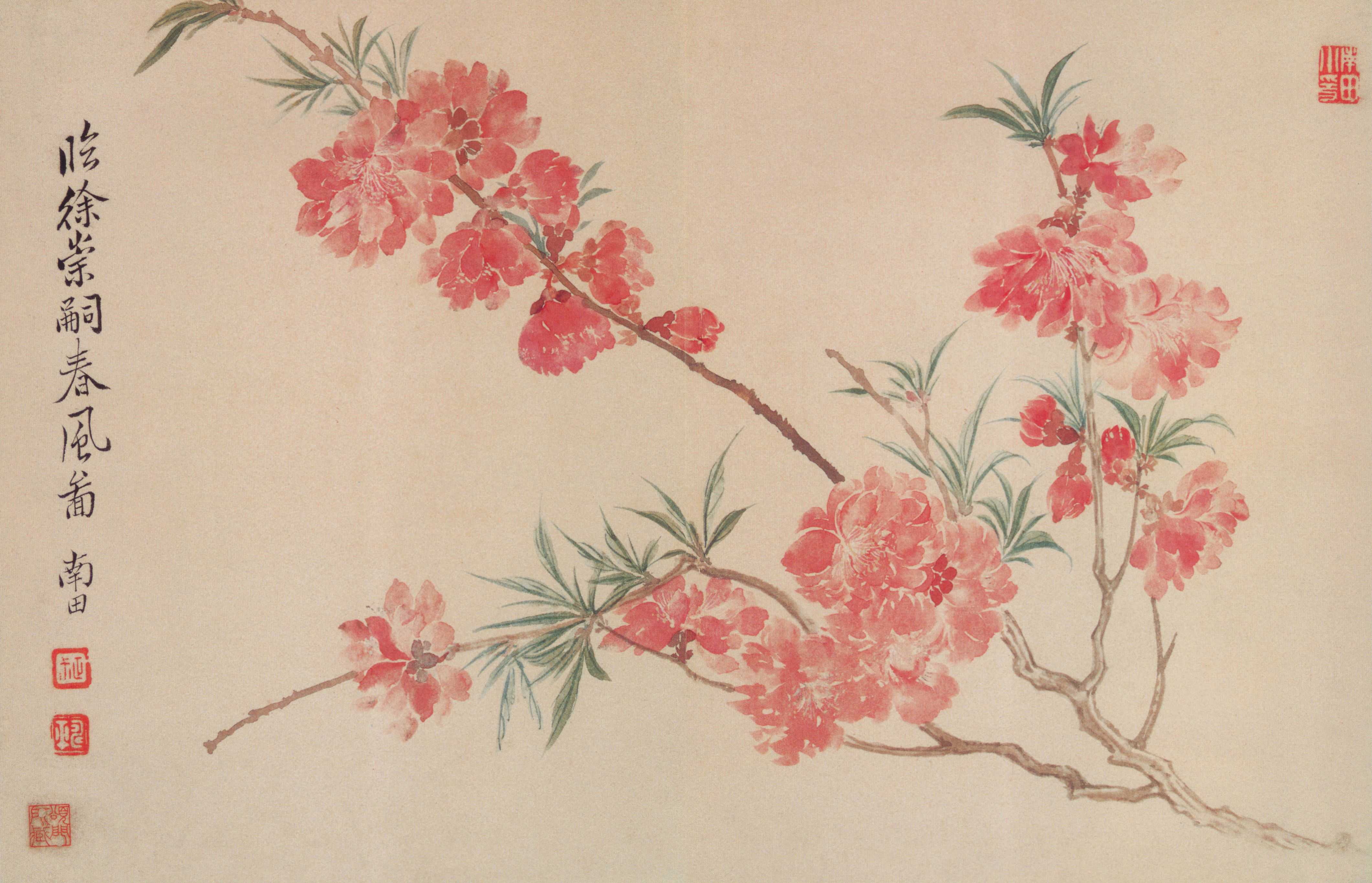 这一时期以“四王”为首,在清统治者的推崇下,复古之风大盛。在摹古与革新的时代潮流之中,恽寿平独善其身,坚持自我,他所画没骨花卉,贵在不随波逐流,贵在不拘泥于传统,把师古人和师造化融为一体,恽寿平在研习古人技法的前提下,虽托名师法徐崇嗣,实则合理吸收黄筌、徐熙两派的优点,将没骨花卉画的技法发挥到了一个臻于成熟的境界。