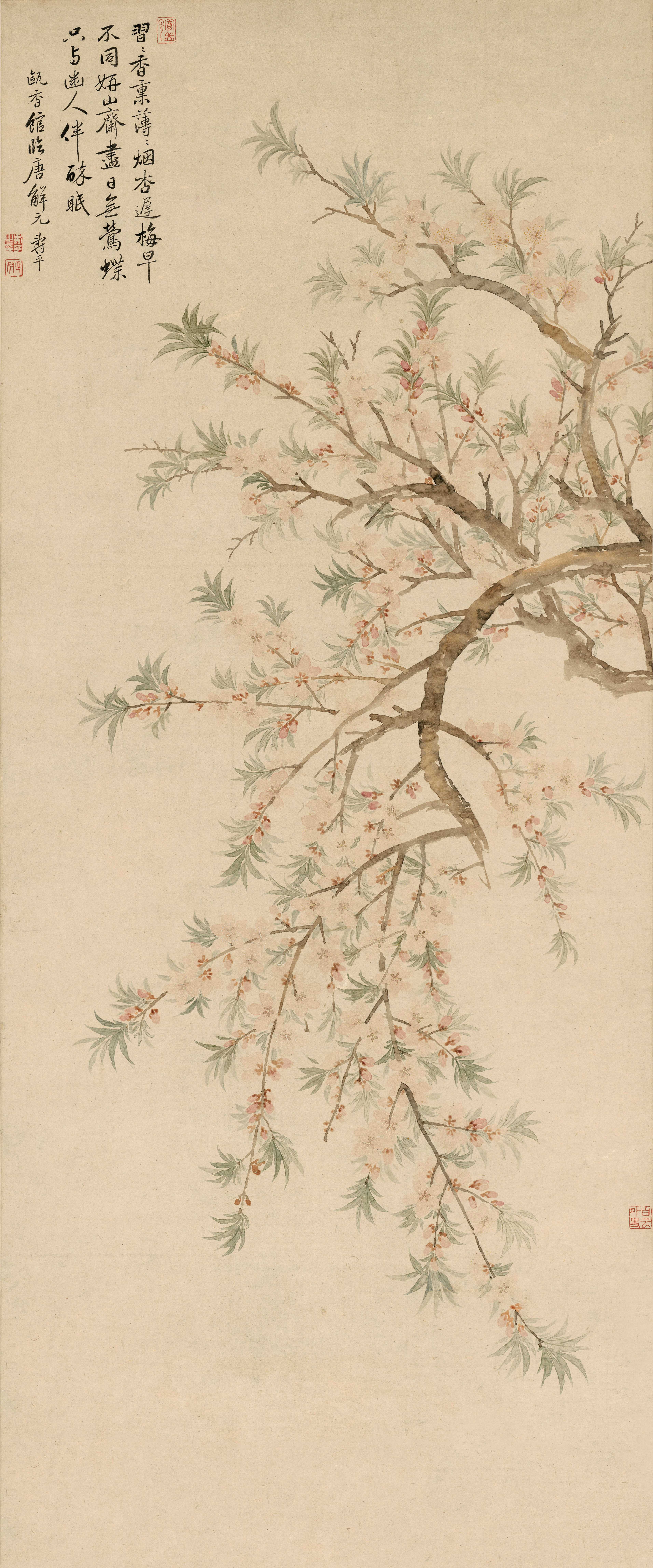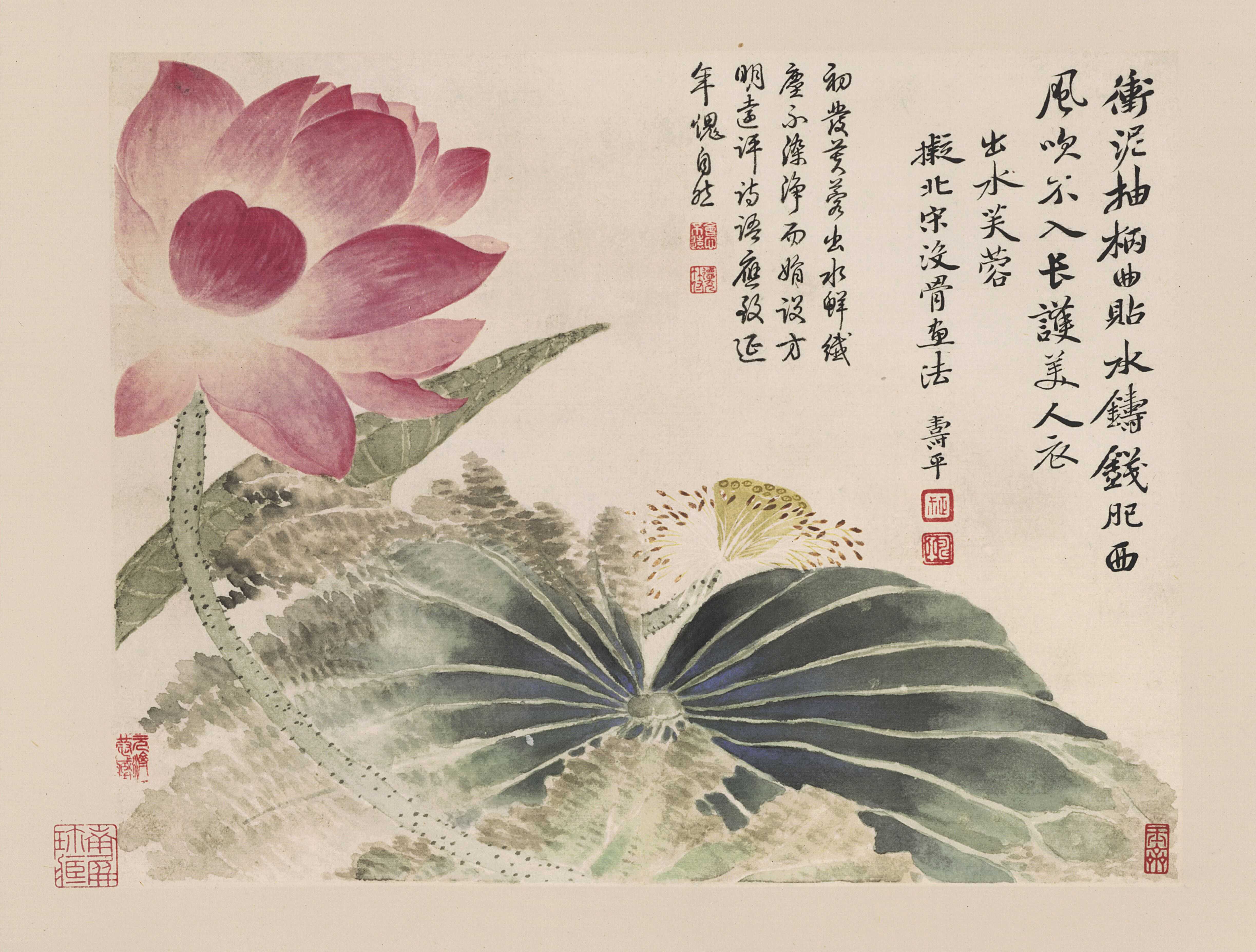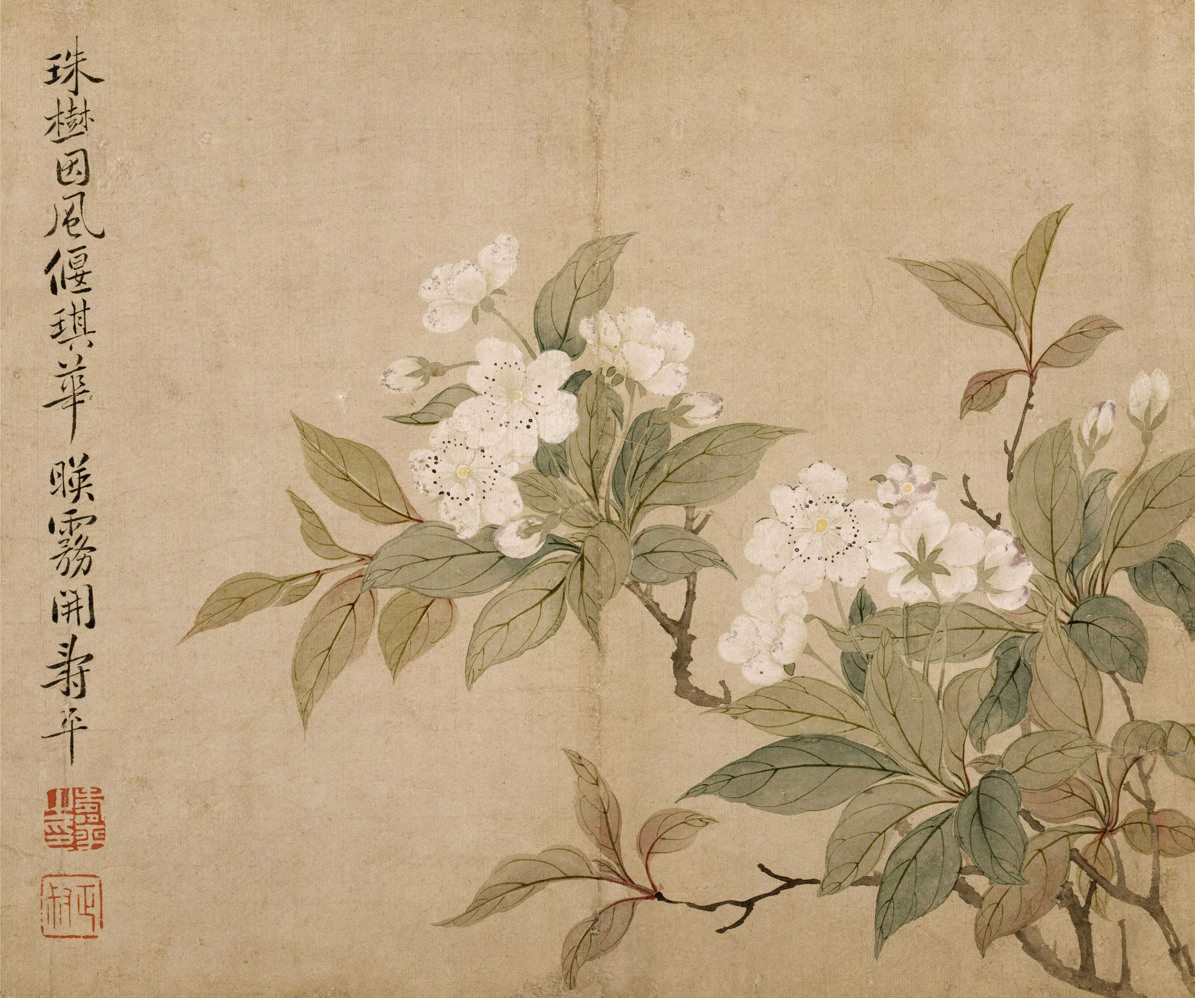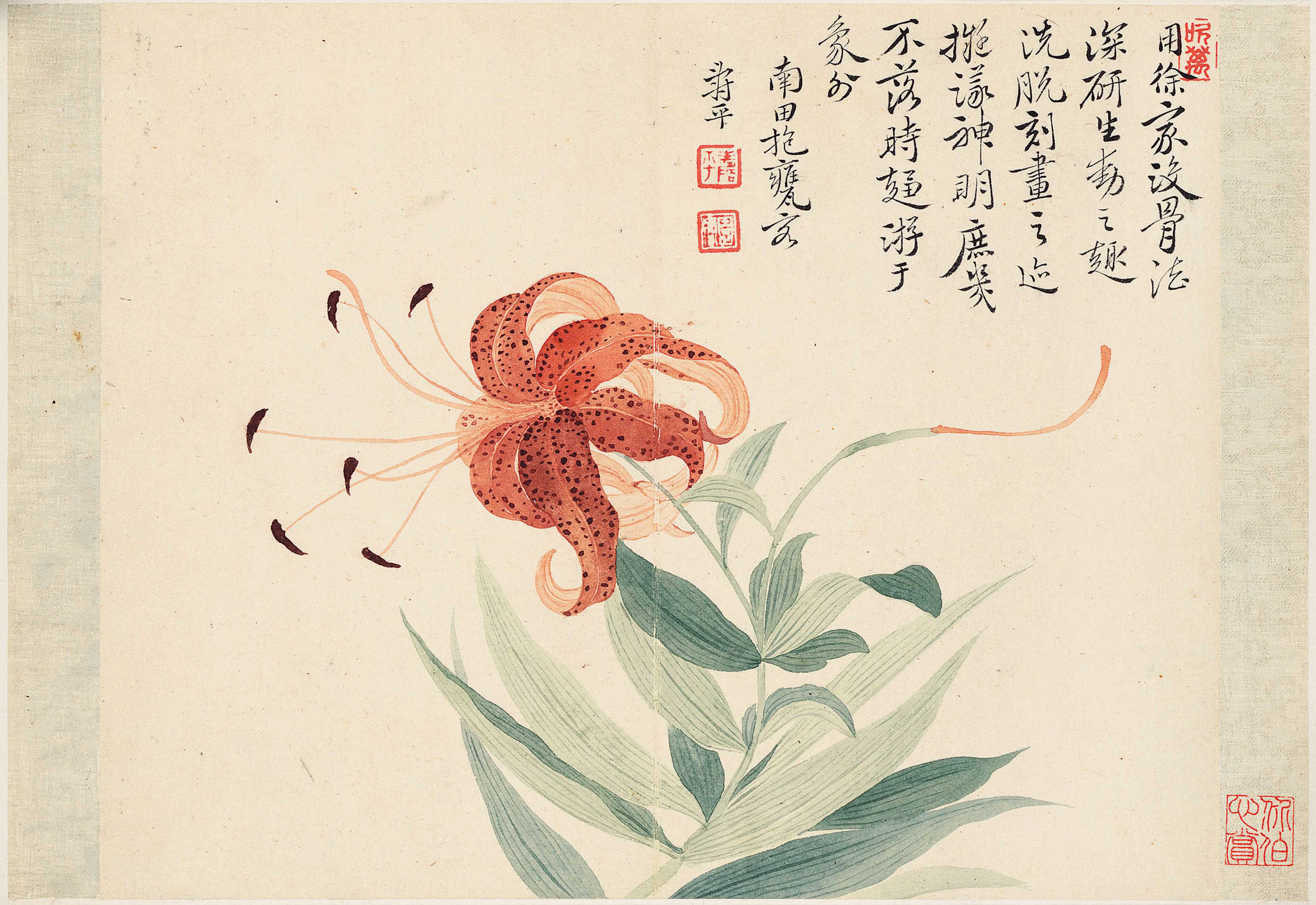 清初的花鸟画发展基本上是承接在明花鸟画写意之范畴,出现了朱耷和石涛这一批文人大写意花鸟画的佼佼者,在逐步发展中,花鸟画也逐渐也开始流行勾勒重彩的风格,但是大部分重彩花鸟纤丽浮艳,缺少新意。就在这一时期,恽寿平以独特的没骨法画花卉,一扫时习,重写生,求逸气,他在准确造型的基础上巧妙运用水和色,恰到好处地在色中施水,将没骨画法发展到了极致,成就了清代没骨花鸟的巅峰时刻。