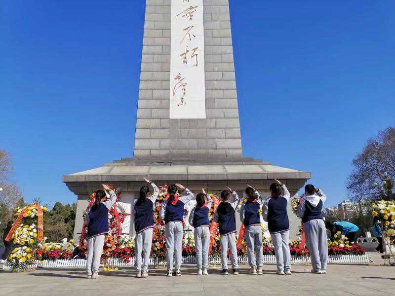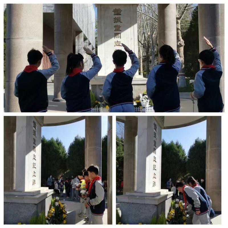 今年是《中华人民共和国爱国主义教育法》实施的第一年,为了让少先队员们进一步传承和弘扬爱国主义精神,铭记历史,缅怀先烈。3月30日上午,四(2)中队组织来到华北烈士陵园参加公祭活动。活动开始后,队员们跟随全体人员唱国歌,并向纪念碑默哀,以表达对先烈们的哀思。大家通过献一枝花,敬一个礼的方式,表达对英雄的敬畏和缅怀。