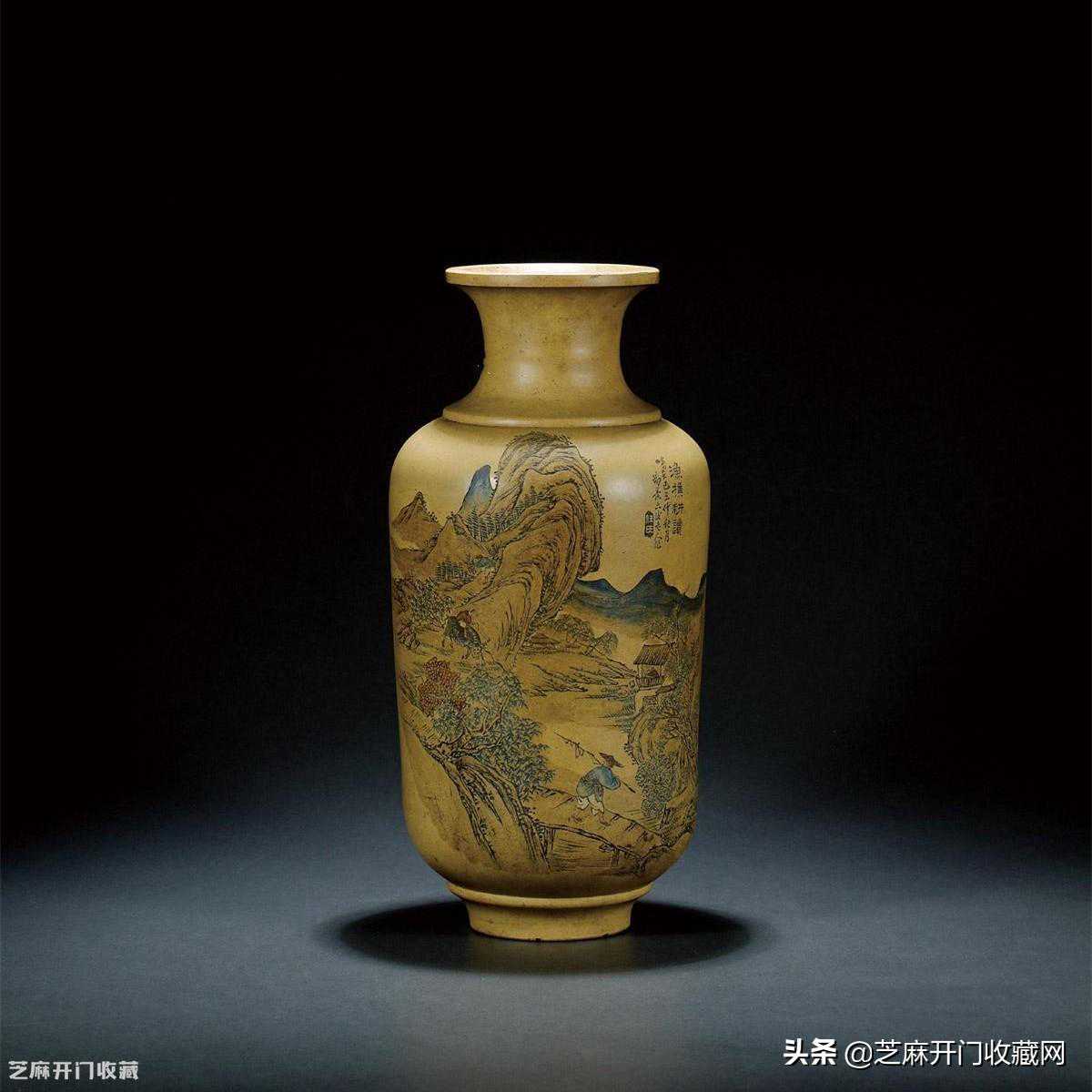 3:民国·任淦庭、蒋永西刻紫泥粉浆大赏瓶,尺寸:46.5×23厘米,估价:RMB280,000~350,000,成交价RMB517,500