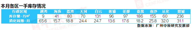 除越秀外,从化、增城、南沙三个外围区消化周期最长。