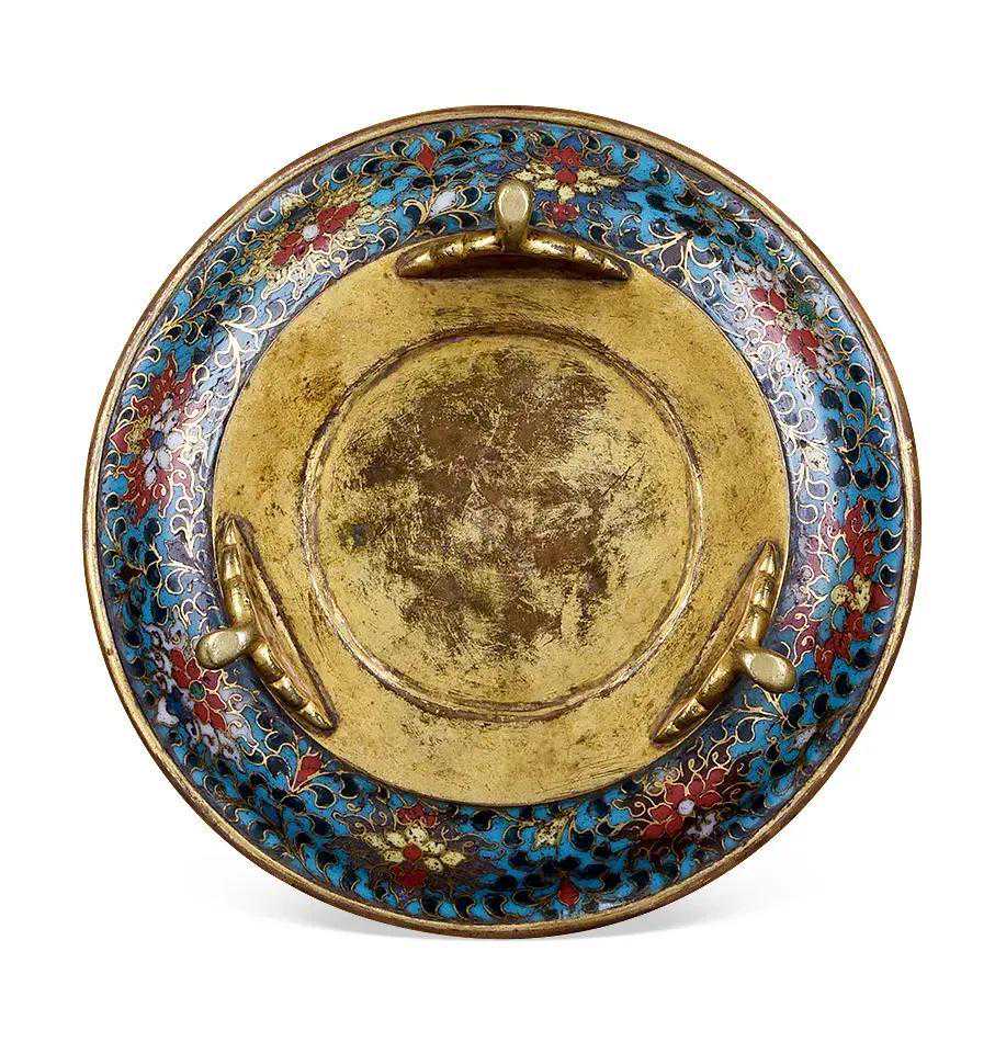 明铜胎掐丝珐琅缠枝莲纹香盘D:13cm