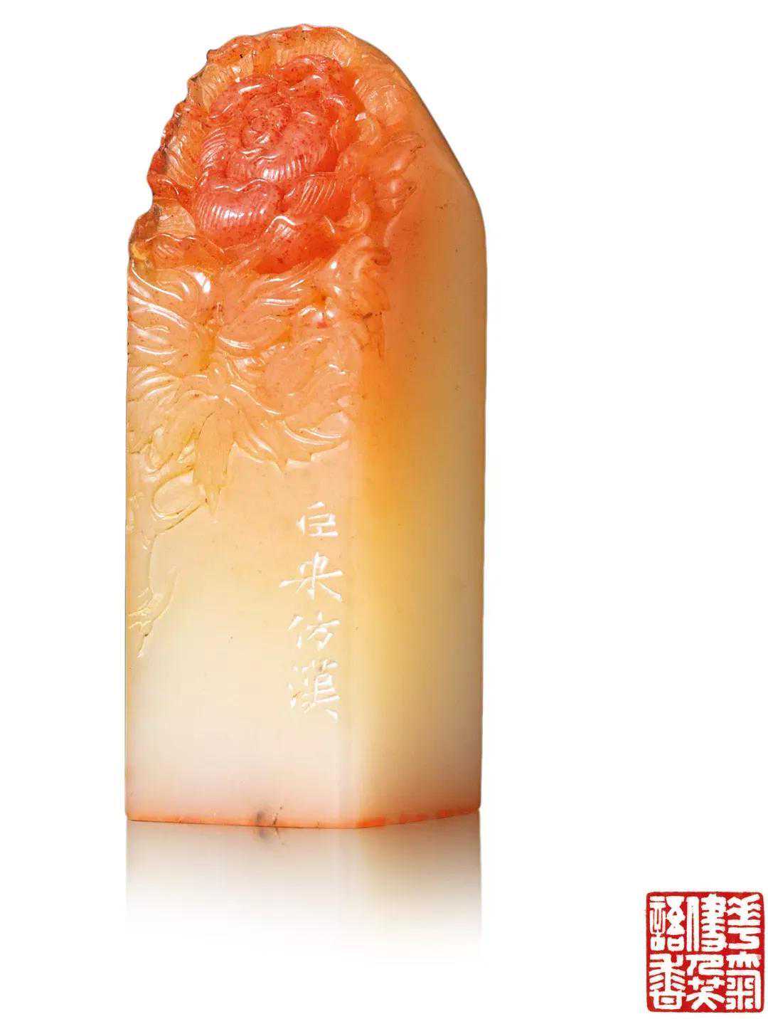 民国陈巨来款寿山芙蓉石花卉纹印章