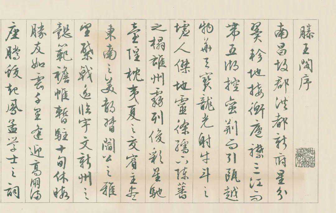 在他晚年的作品中,最为人称道的还是他的这幅《滕王阁序》,这幅作品不仅字形美观,更重要的是字里行间透露出的文人气息和才子情怀,可以与之唐伯虎比肩了。