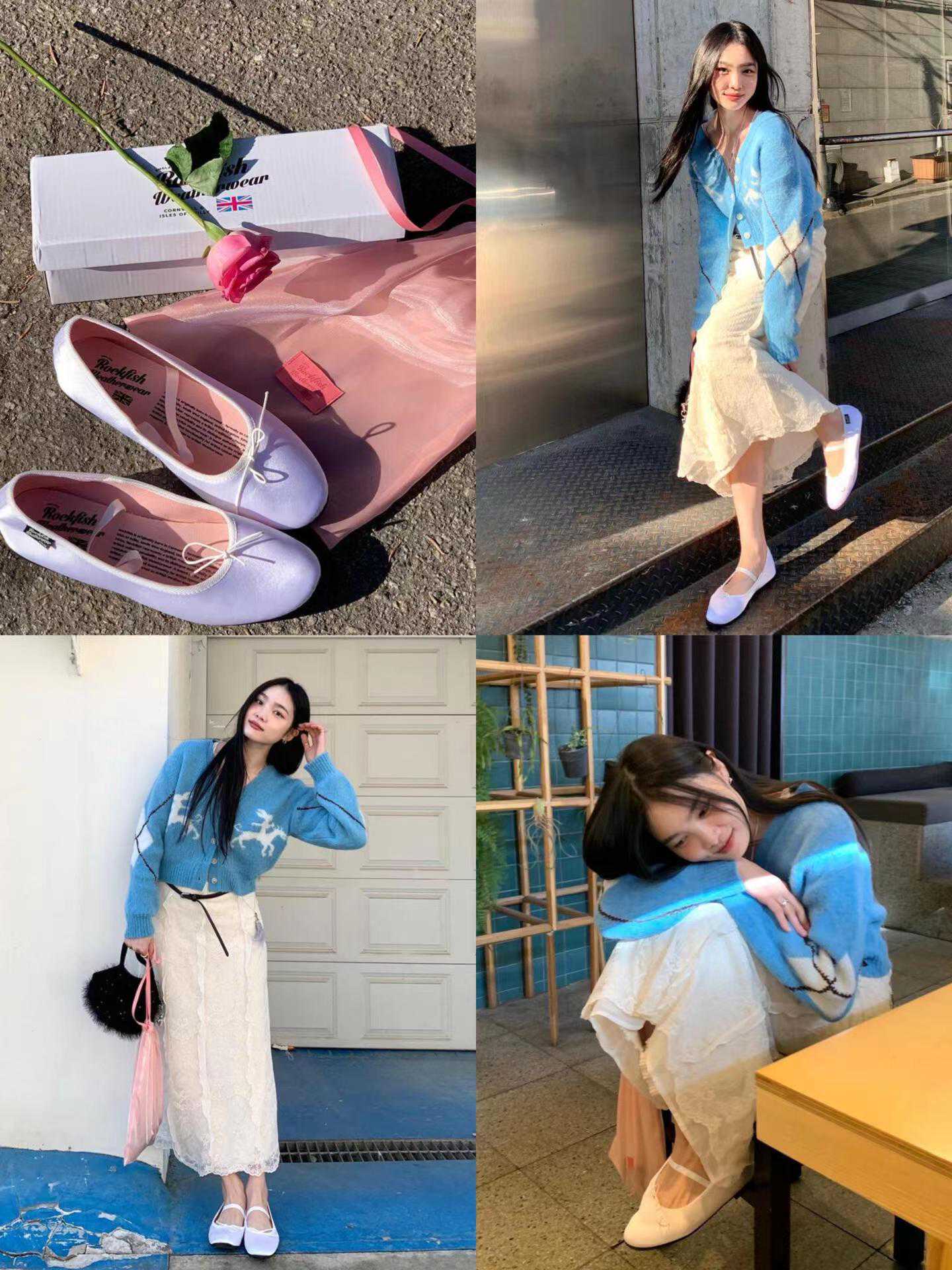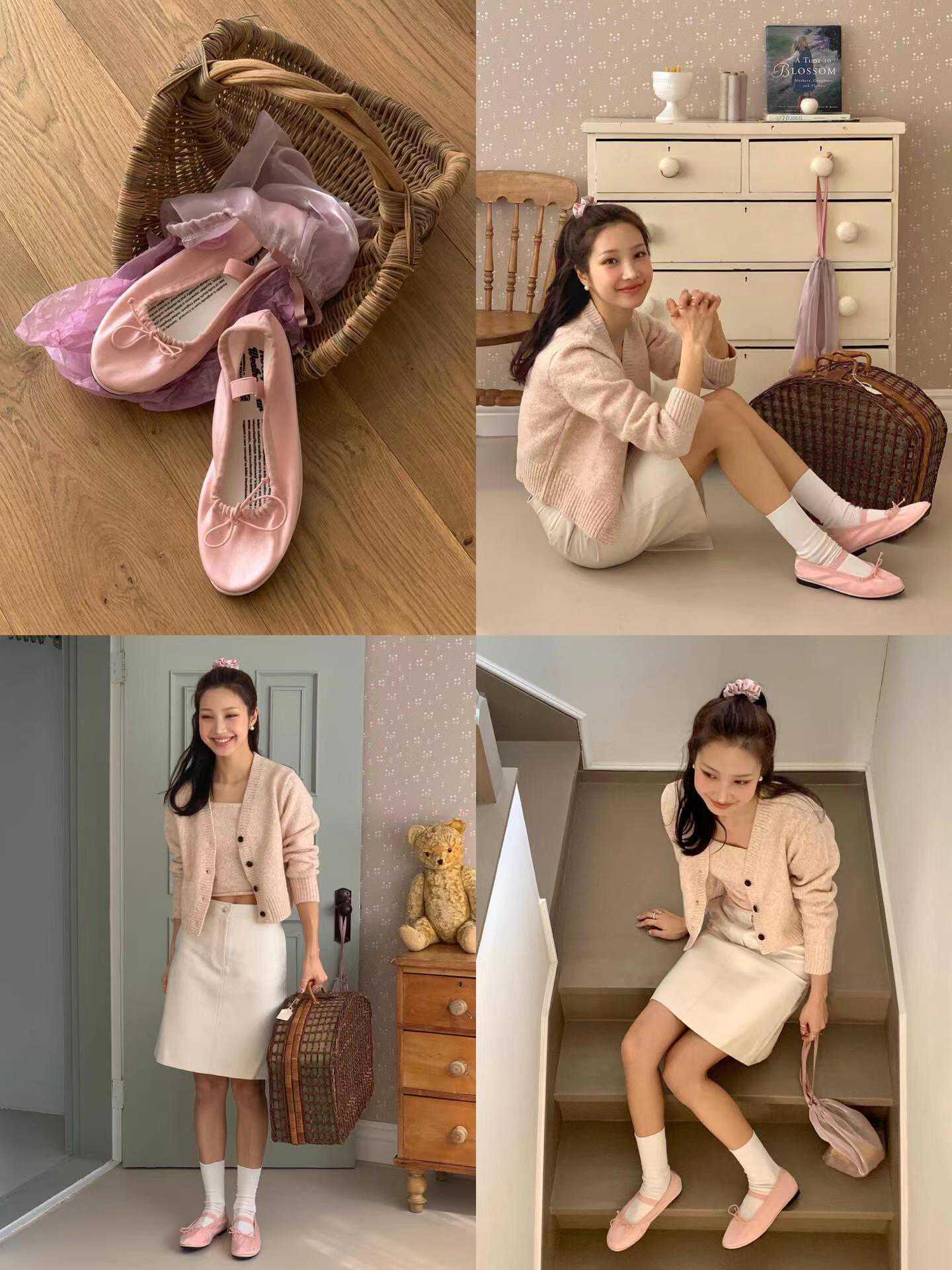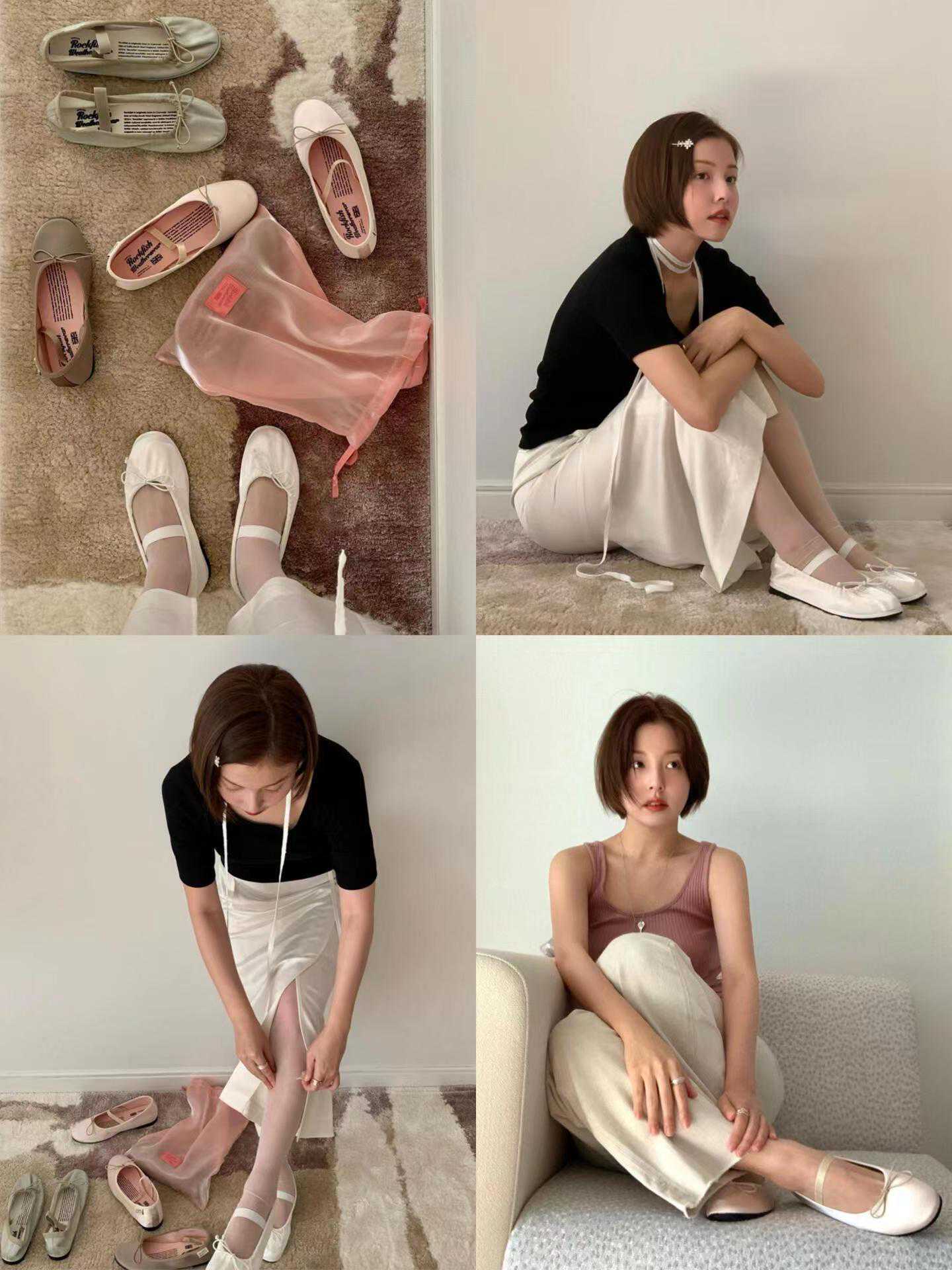 想象一下,在午后的阳光里,一位女子穿着简约的白色T恤,搭配一条高腰阔腿裤,脚下是一双粉色的芭蕾舞鞋。她轻盈地走在石板路上,每一步都仿佛是在跳跃,散发出独特的魅力。这双芭蕾舞鞋,不仅是她穿搭的点睛之笔,更是她内心对优雅与自由的追求。