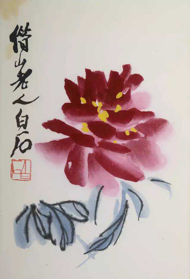 海派之后画牡丹的大家当首推齐白石。齐白石在继承了吴昌硕的基础上又吸收了青藤、八大以及扬州八怪等人的画法,结合民间色彩,使他笔下的牡丹用笔比吴昌硕更雄阔,造型更稚拙,且大红大绿,艳而不俗。融浑厚与清润于一体,使写意牡丹更加平民化,更接近人民大众祈求平安富贵的美好愿望。