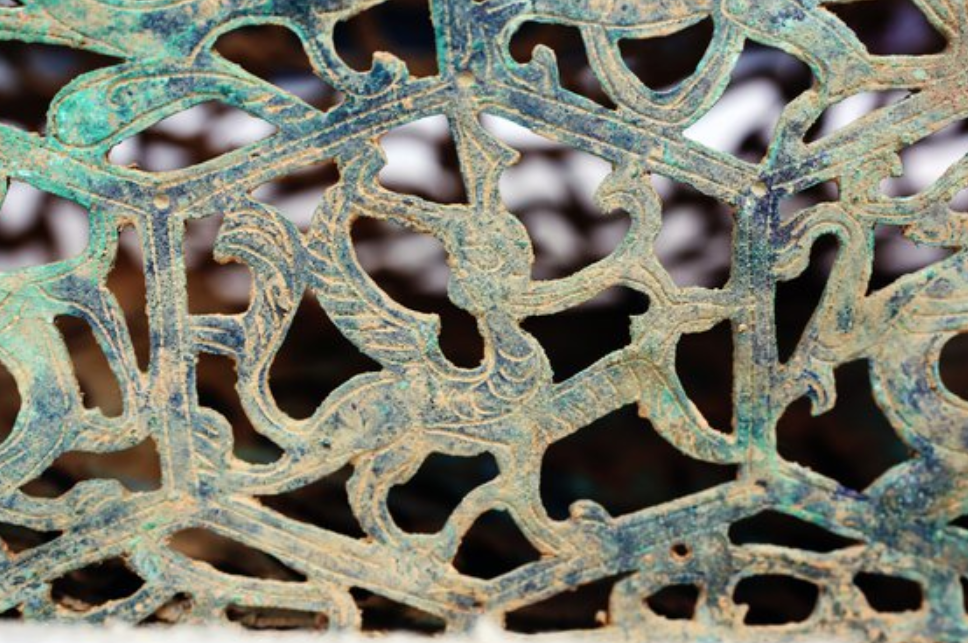 韩国出土的镀金铜鞋,脚背有龙头装饰