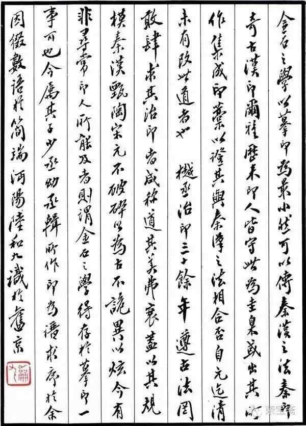 陆和九的行书,帖学功力很深,受过正统的馆阁体训练,因此其行书挺拔劲健,所作书札也端庄谨严,一丝不苟,颇有儒者喜怒哀乐不行于色的姿态。