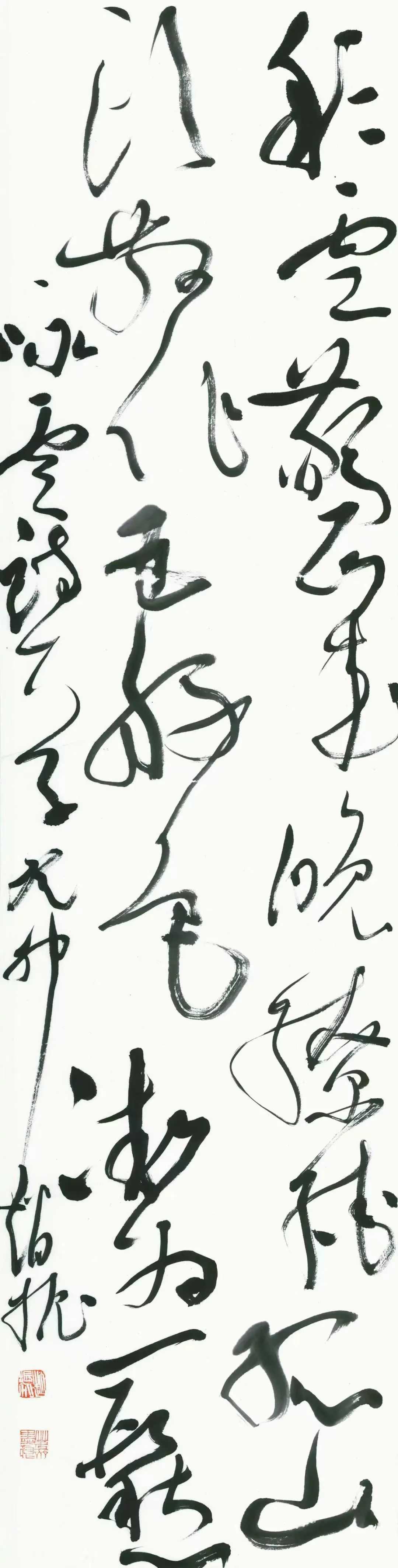 尝试用个性的手法、独到的理解去表现经典和传统,写意就是通其意,注重精神气格的培养,追意味,求意相,表现“象”与“相”,尤其在草书中体现更甚,不泥于外在的形态,表达对草书写意精神的理解。我最近喜欢在作品中加入一些苍浑的,疾涩的,凝练的线质,固有的局限会因新的书写元素的加入而被打破,在不断地尝试与积累下,会逐渐形成属于自我的,个性的,不失传统笔墨色彩的新格局。
