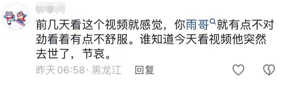 即便有再多的钱,都买不来健康,所以活着的人更要注意自己的身体,愿雨哥一路走好,天堂无病痛。