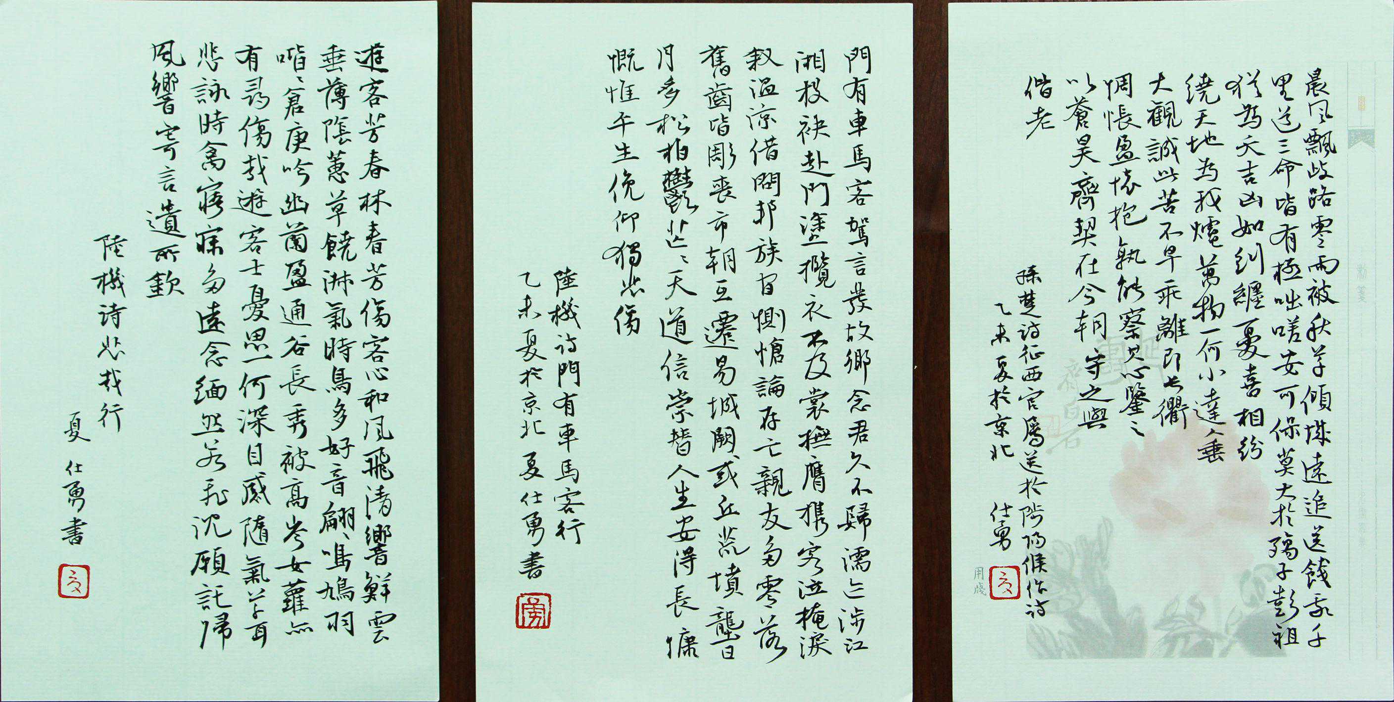 夏仕勇,贵州镇远人,1982年12月生。现为中国书协会员,贵州省美协会员,贵州省书协楷书委员会委员,黔南州书协副主席,墨社社员,贵州首届青年书法十佳,省政府文艺奖获得者,贵阳市2016高层次社科文艺人才。2014---2015年研修于中国传媒大学文学艺术创作院水墨人物画工作室。书画摄影作品参加各级各类书画大赛及邀请展数十次并多次获最高奖,作品被多家文博单位及省内外友人收藏。《中国书法》、《书法》、《中华书画家》、《书法报》、《书法导报》、《齐鲁晚报》、《今日文坛》、《京江晚报》、《艺术中国》、《书画印》、《河北当代书画》、《决策国展五十家》、《中原书法》、《诗词》等报刊杂志及多家书法专业网站曾专版介绍和刊发作品.